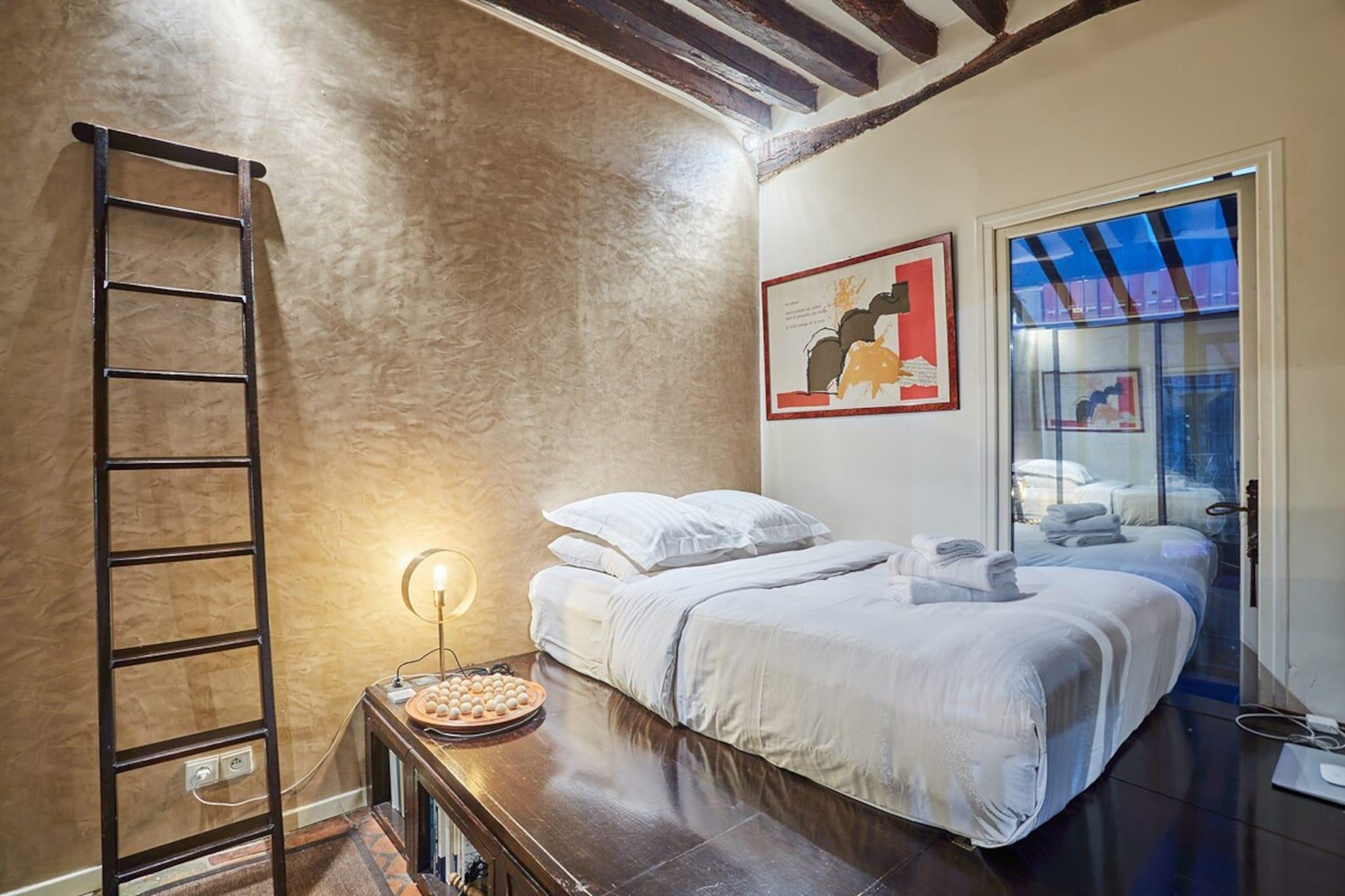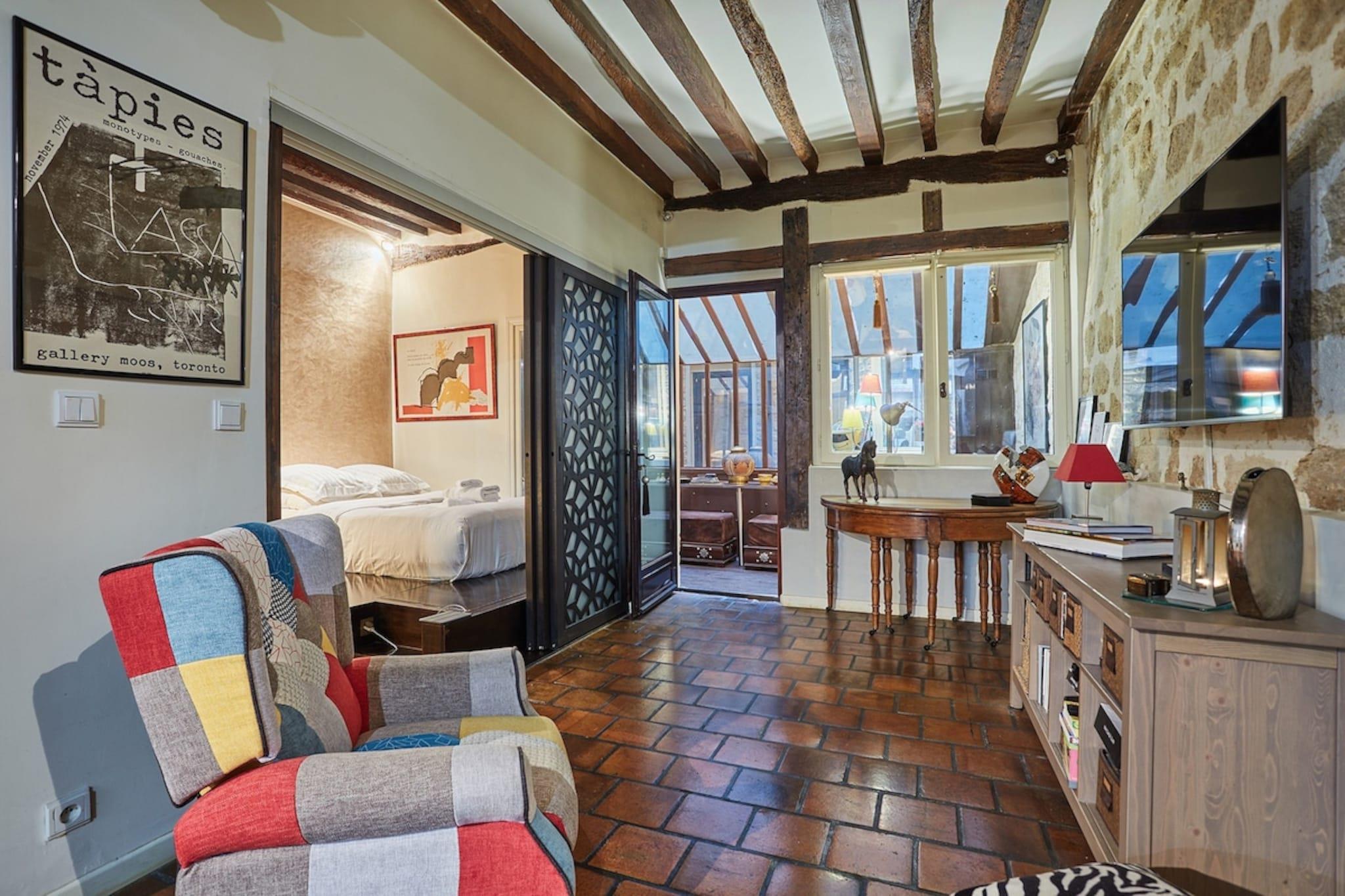 Meget flot lejlighed i stueetagen, beliggende i hjertet af Maris, på hjørnet af Rue de Bretagne, en meget kommerciel gade kendt for sine mange butikker, barer og restauranter. Det er et meget livligt område med børnenes røde marked overfor. Der er det berømte konditori Ladurée og andre kendte konditorer få meter væk. Få meter fra Place des Vosges.