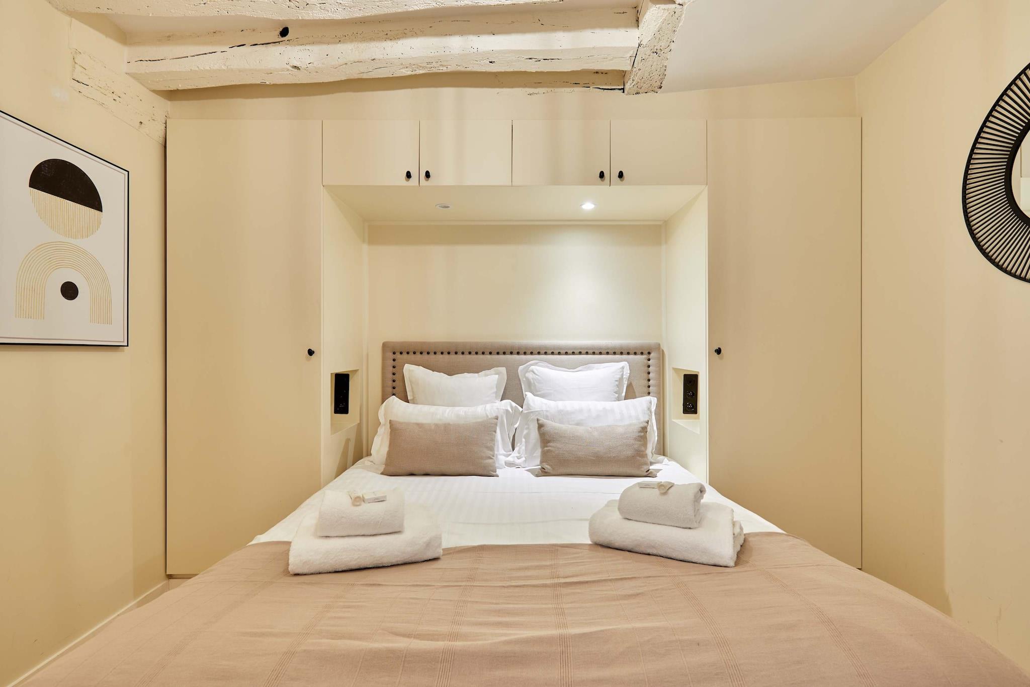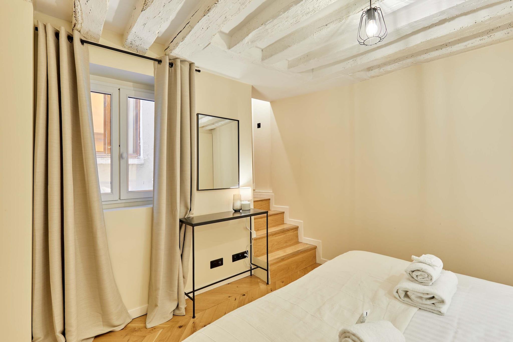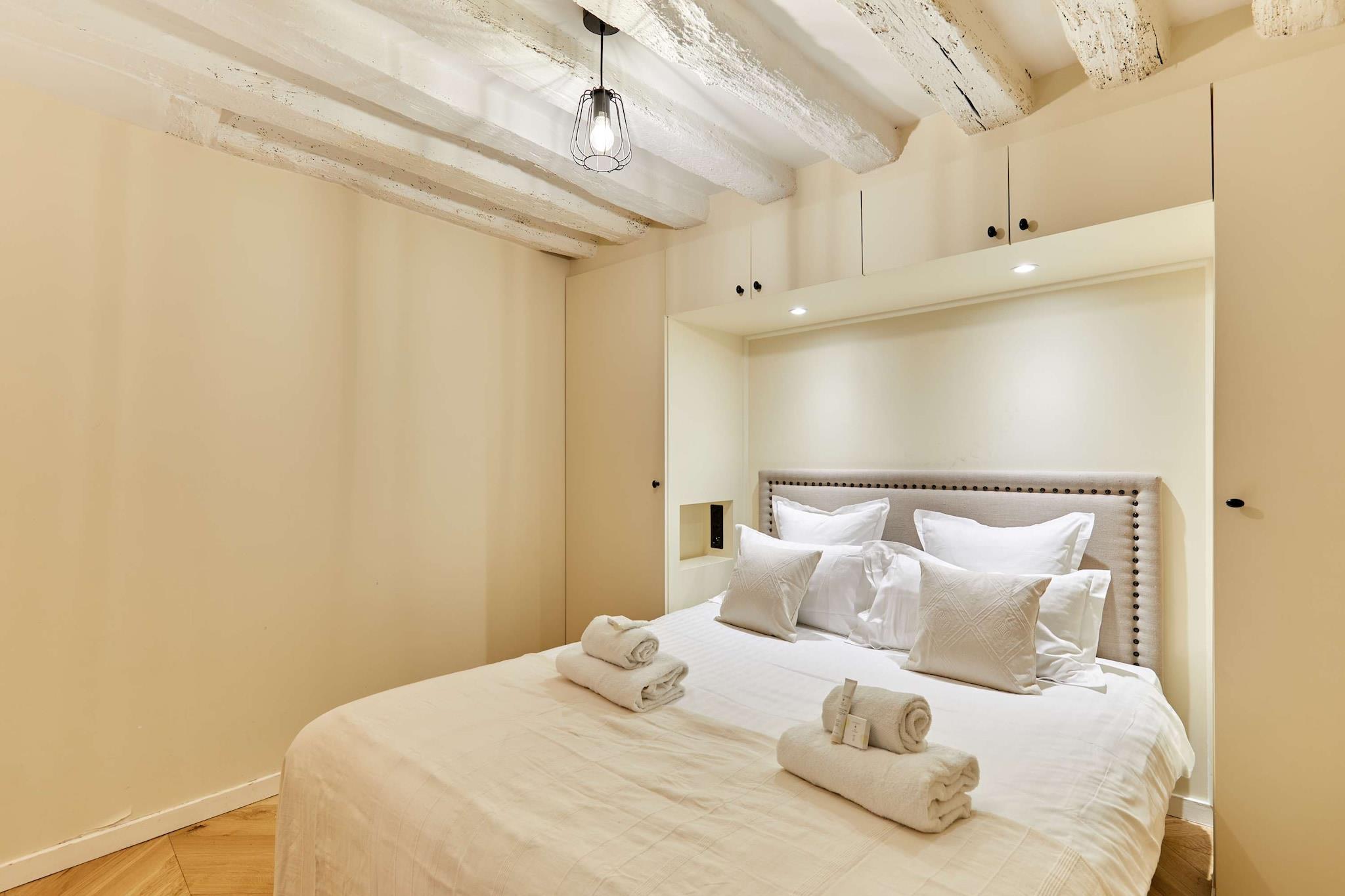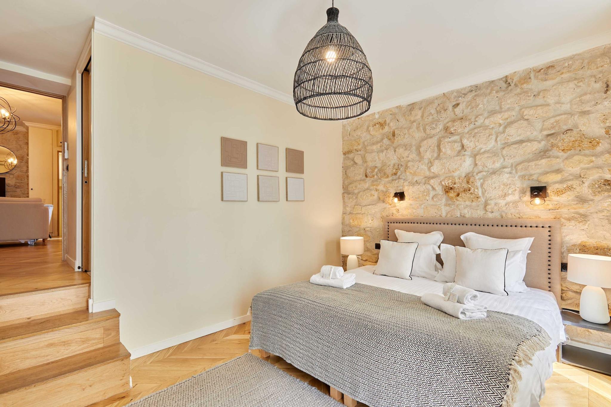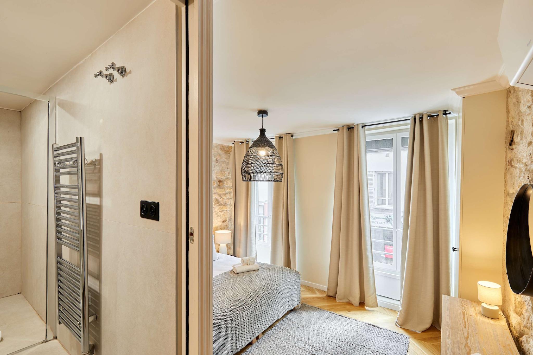 Oplev denne overdådige lejlighed med aircondition, 3 soveværelser og 3 badeværelser, ideelt beliggende i hjertet af Paris. Elegant, rummelig, omhyggeligt møbleret og udstyret med kvalitetsmaterialer, tilbyder den komfort og en perfekt beliggenhed. Beliggende mellem Marais, Beaubourg, Rue Montorgueil, Grands Boulevards og Place des Victoires, vil du være omgivet af trendy caféer, restauranter, butikker og forretninger. Det er det perfekte sted for et mindeværdigt ophold med familie eller venner.