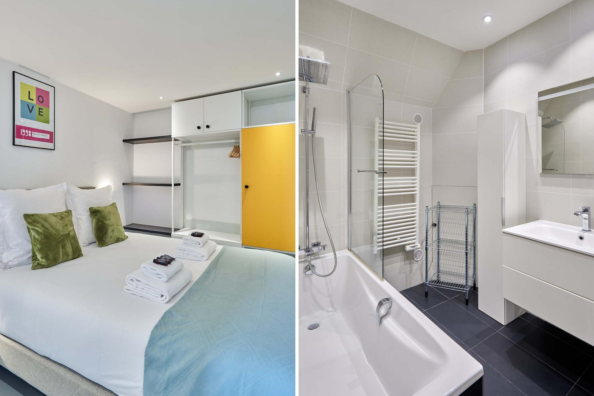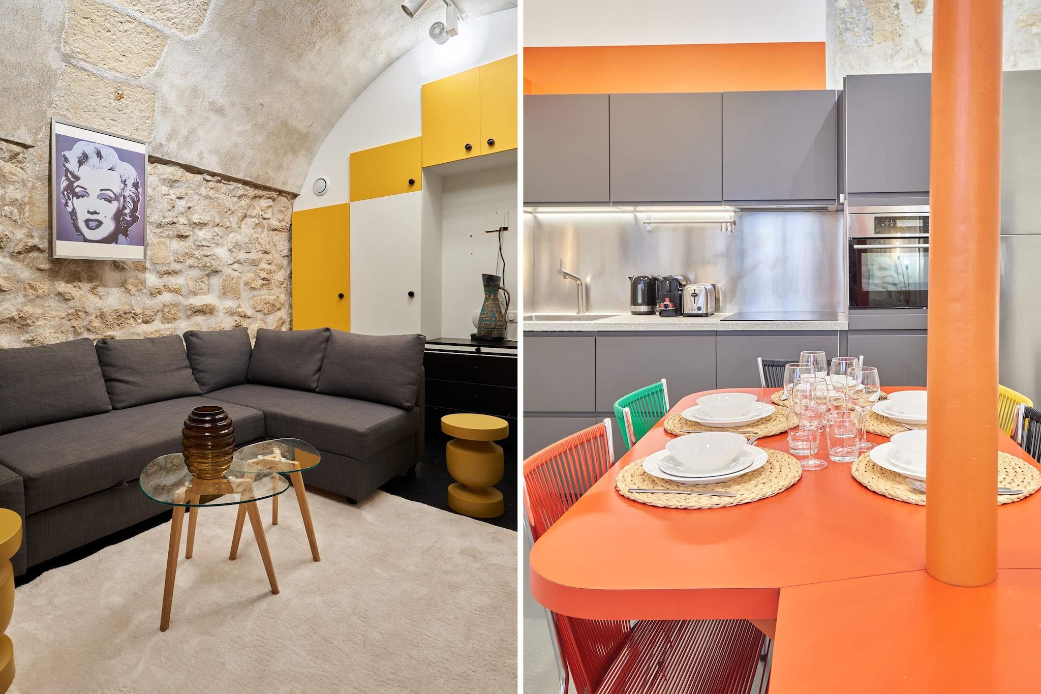 Pragtfuld lejlighed med en yderst god beliggenhed i hjertet af det berømte Marais-distrikt i en smuk parisisk stenbygning med egen indgang. Denne bolig består af 2 soveværelser og 2 badeværelser og kombinerer modernitet og autenticitet. Stille, fuldt udstyret og smagfuldt indrettet af professionelle, er det det ideelle sted for en parisisk ferie som par, familie eller venner.