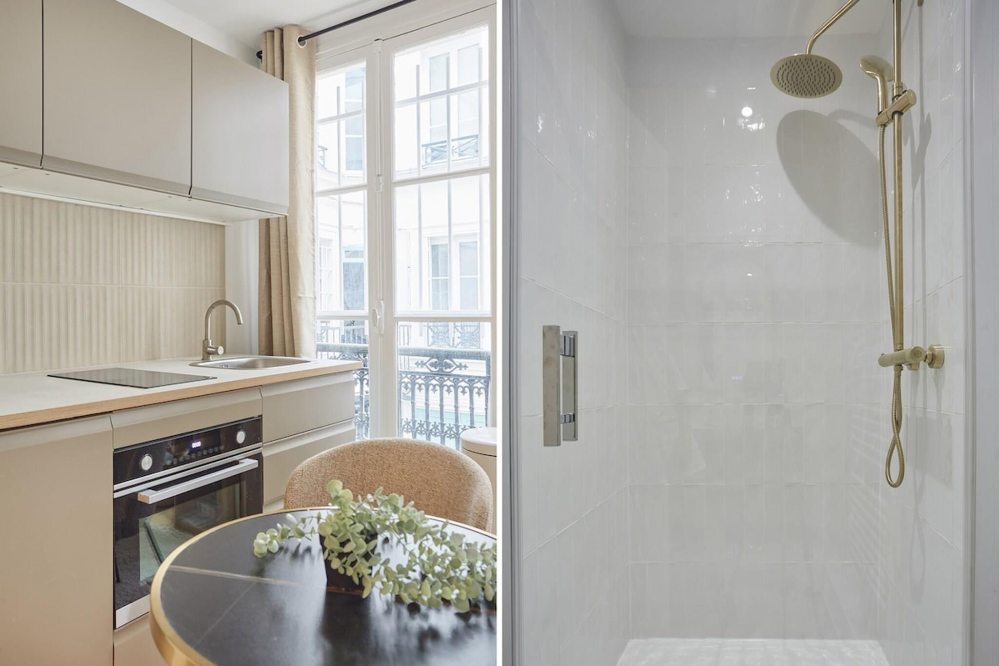 Velkommen til vores yderst velbeliggende, elegante, varme og moderne studiolejlighed, fuldt udstyret. Beliggende kun få skridt fra den prestigefyldte Place des Vosges, omgivet af trendy butikker, hyggelige caféer og udsøgte restauranter samt adskillige kulturelle seværdigheder. Vores lejlighed, beliggende i en typisk parisisk bygning med sine historiske lister og pejse, tilbyder de ideelle rammer for et vellykket ophold for to.