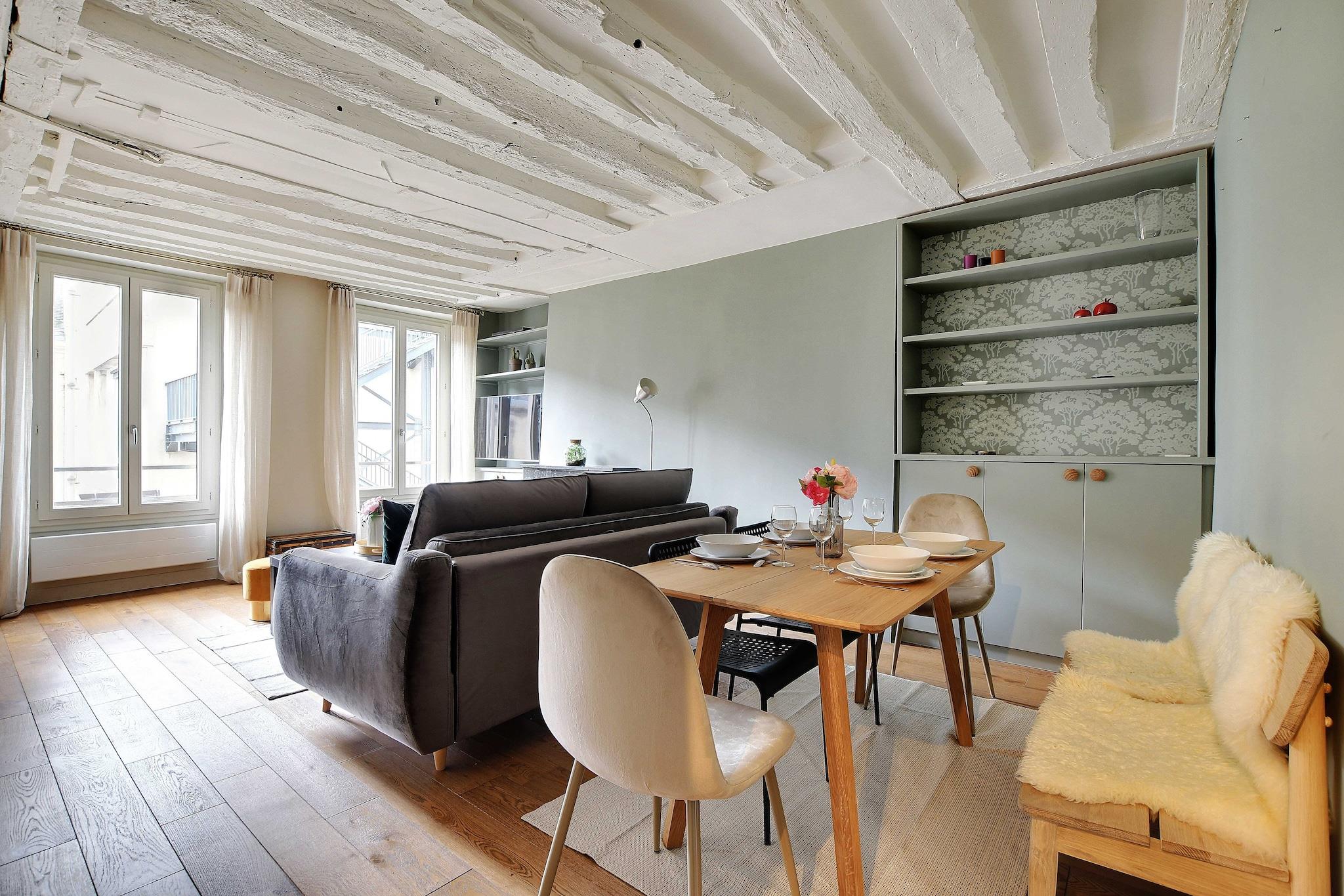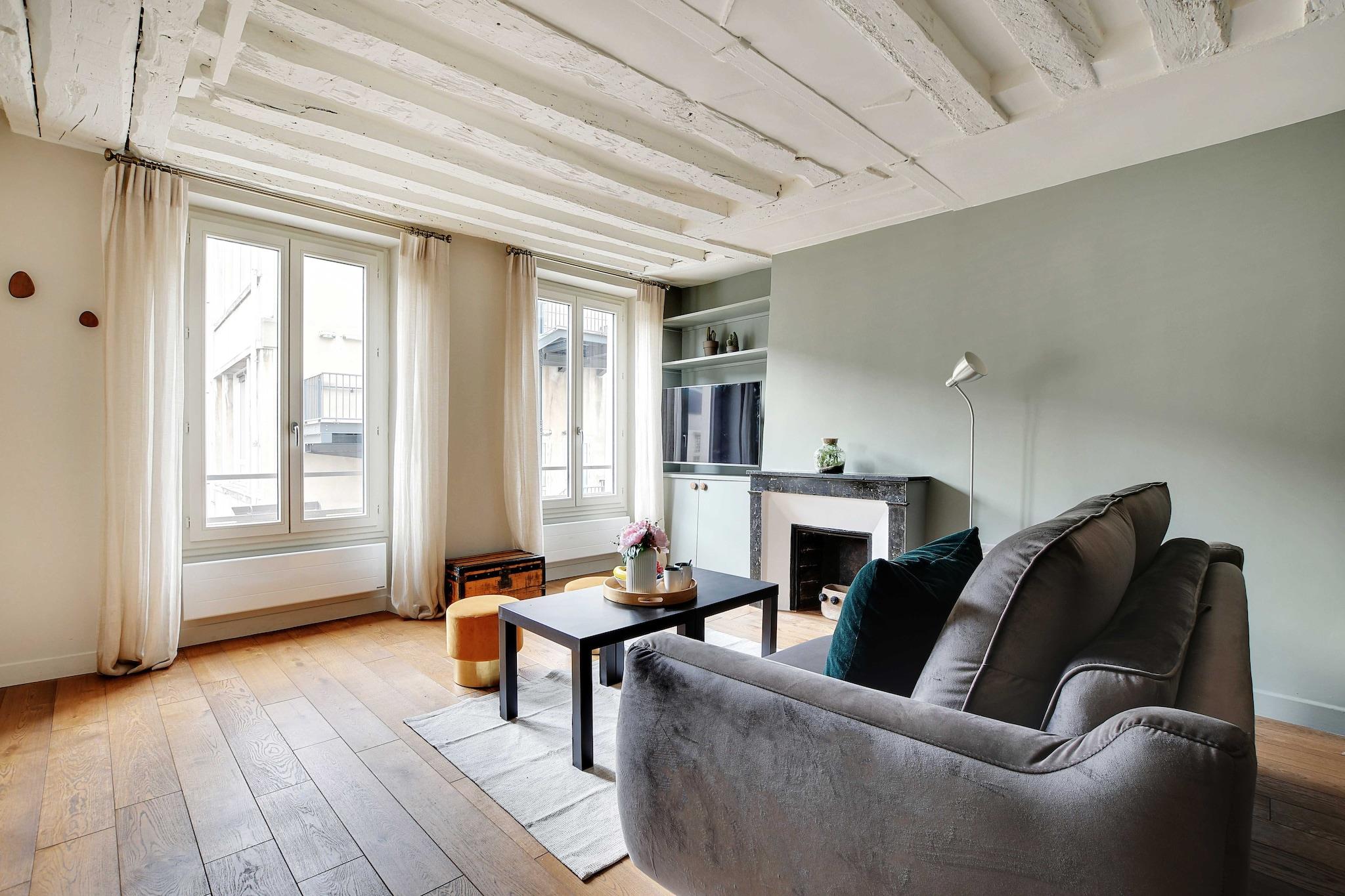 På 3. etage: (Stue(, enkeltsovesofa, Fjernsyn), Køkken(kakkelovn, elkedel, brødrister, kaffemaskine, ovn, mikrobølgeovn, opvaskemaskine , køleskab, ), soveværelse(, dobbeltseng), badeværelse(bruser, toilet, føntørrer, Håndklæder/sengelinned (inkl.), )) , , , vaskemaskine, varme, strygejern, crib(free), , , , Carbon monoxide detector, Cleaning Disinfection, Downtown, Enhanced cleaning practices, High touch surfaces disinfected, Long term stays allowed, Room-darkening shades