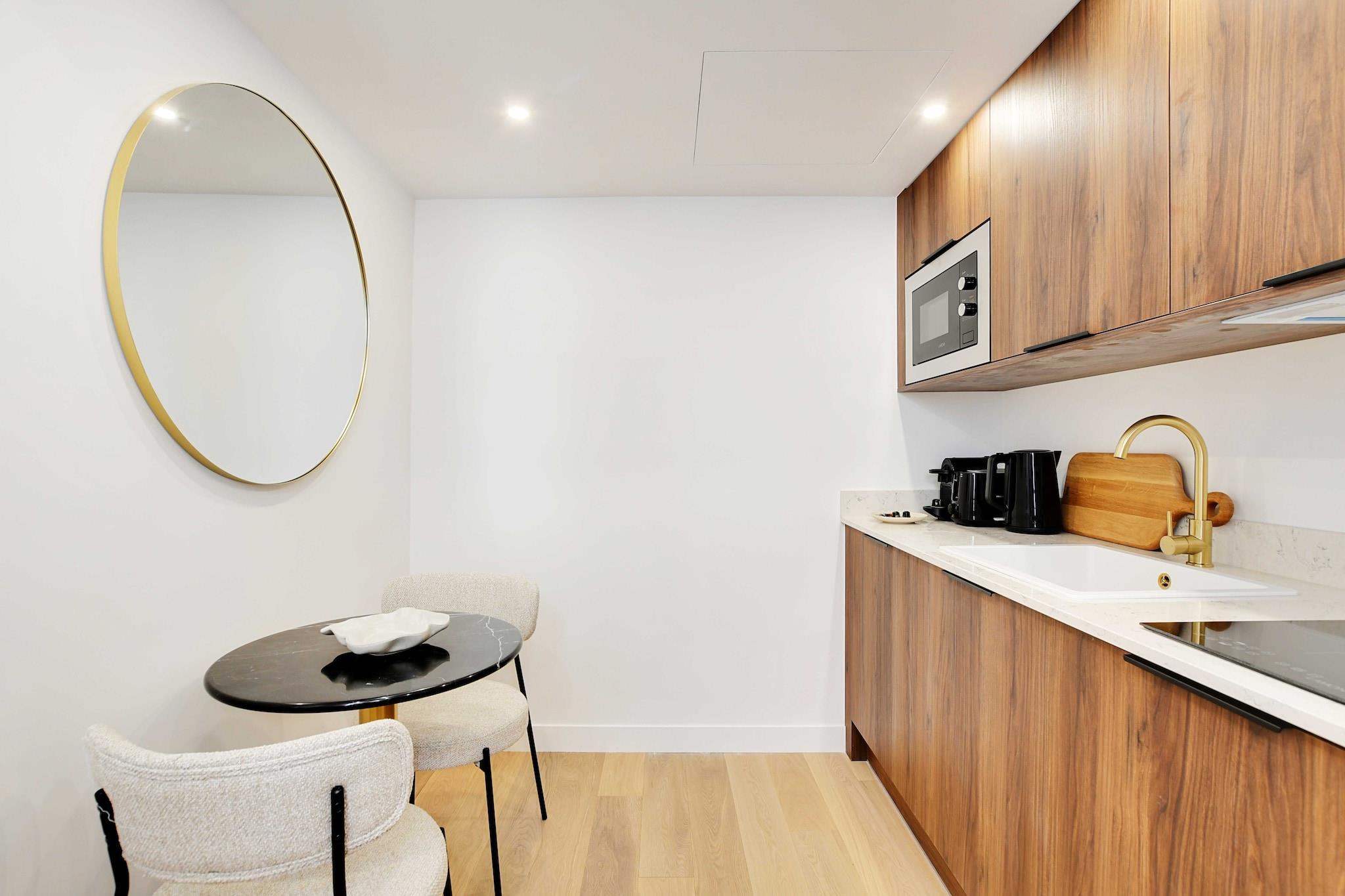 På 2. etage: (åbent køkken(spisebord, kakkelovn, kogeplade, elkedel, brødrister, kaffemaskine, mikrobølgeovn, køleskab, vaskemaskine, , ), soveværelse(, , king size-seng, Fjernsyn, kaffemaskine), badeværelse(bruser, håndvask, toilet, Håndklæder/sengelinned (inkl.), )) , , vaskemaskine, varme, klimaanlæg, strygejern, føntørrer, , Cleaning Disinfection, Downtown, Enhanced cleaning practices, High touch surfaces disinfected, Town
