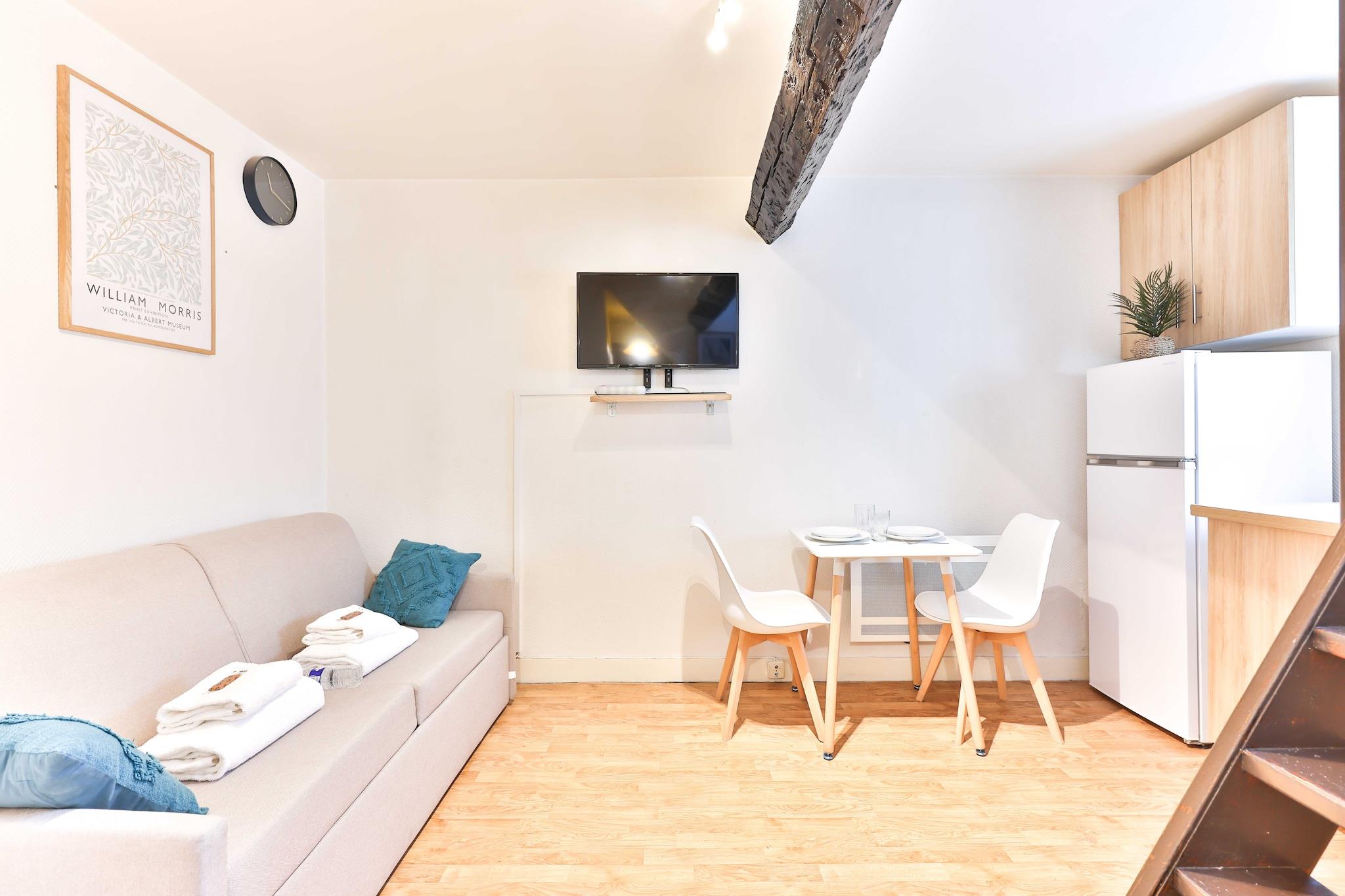 This apartment for 4 persons is located rue de Bretagne in the heart of the Marais. Near the emblematic "Marché des Enfants Rouges" Explore Paris with ease from this prime location, offering easy and fast access to the entire French capital through a myriad of public transportation options: Metro line 8 Filles du Calvaire, just 245 meters away, providing a smooth connection to the Parisian underground network. Metro line 8 St-Sébastien Froissart, at an enticing proximity of 274 meters, simplifying your journeys to various city districts. Metro lines 5 and 9 at Oberkampf station, a tempting 449 meters away, expanding your horizons to other captivating destinations. Enjoy the freedom offered by nearby Vélib stations for flexible urban movements at your convenience. Take advantage of the numerous bus lines operating day and night, offering unparalleled mobility to explore Paris at your own pace. Opt for the elegance of taxis with several companies at your disposal, including the renowned G7 taxis. For a quick reservation, simply dial 36 07 and immerse yourself in the Parisian experience with style. Your adventure in the City of Light begins here, with optimal accessibility to discover every corner of Paris with ease and elegance.