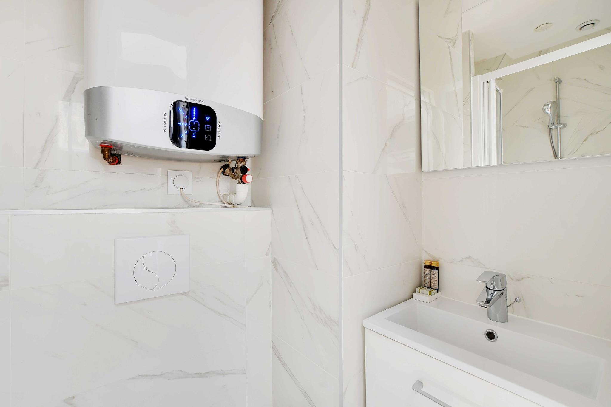På 1. etage: (Køkken(kakkelovn, elkedel, brødrister, kaffemaskine, mikrobølgeovn, opvaskemaskine , køleskab, , ), Stue/soveværelse(, dobbeltsovesofa, Fjernsyn), badeværelse(bruser, toilet, føntørrer, Håndklæder/sengelinned (inkl.), , )) , , , varme, strygejern, Carbon monoxide detector, Cleaning Disinfection, Downtown, Enhanced cleaning practices, High touch surfaces disinfected, Long term stays allowed, Roll-in shower with shower bench or chair, Town
