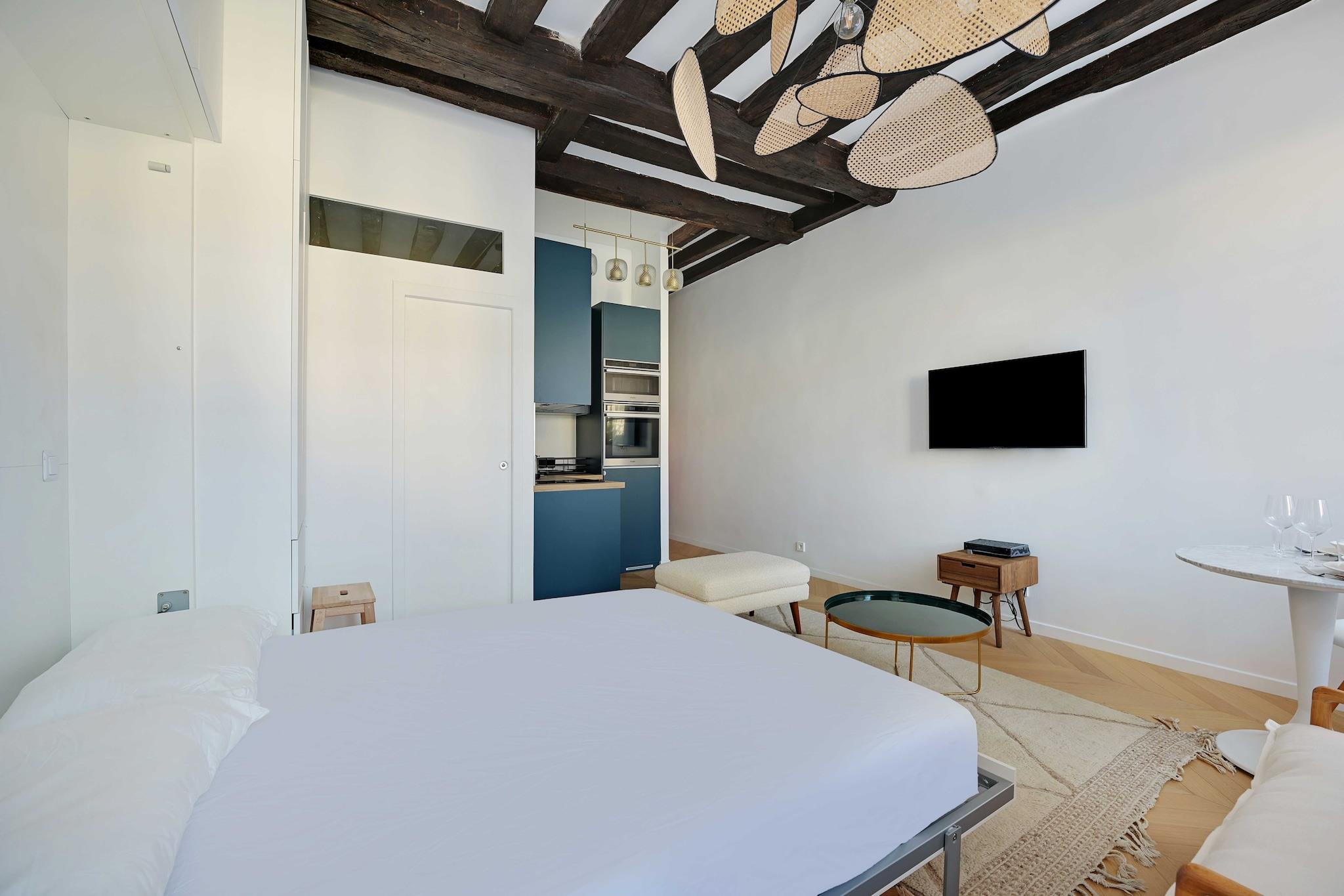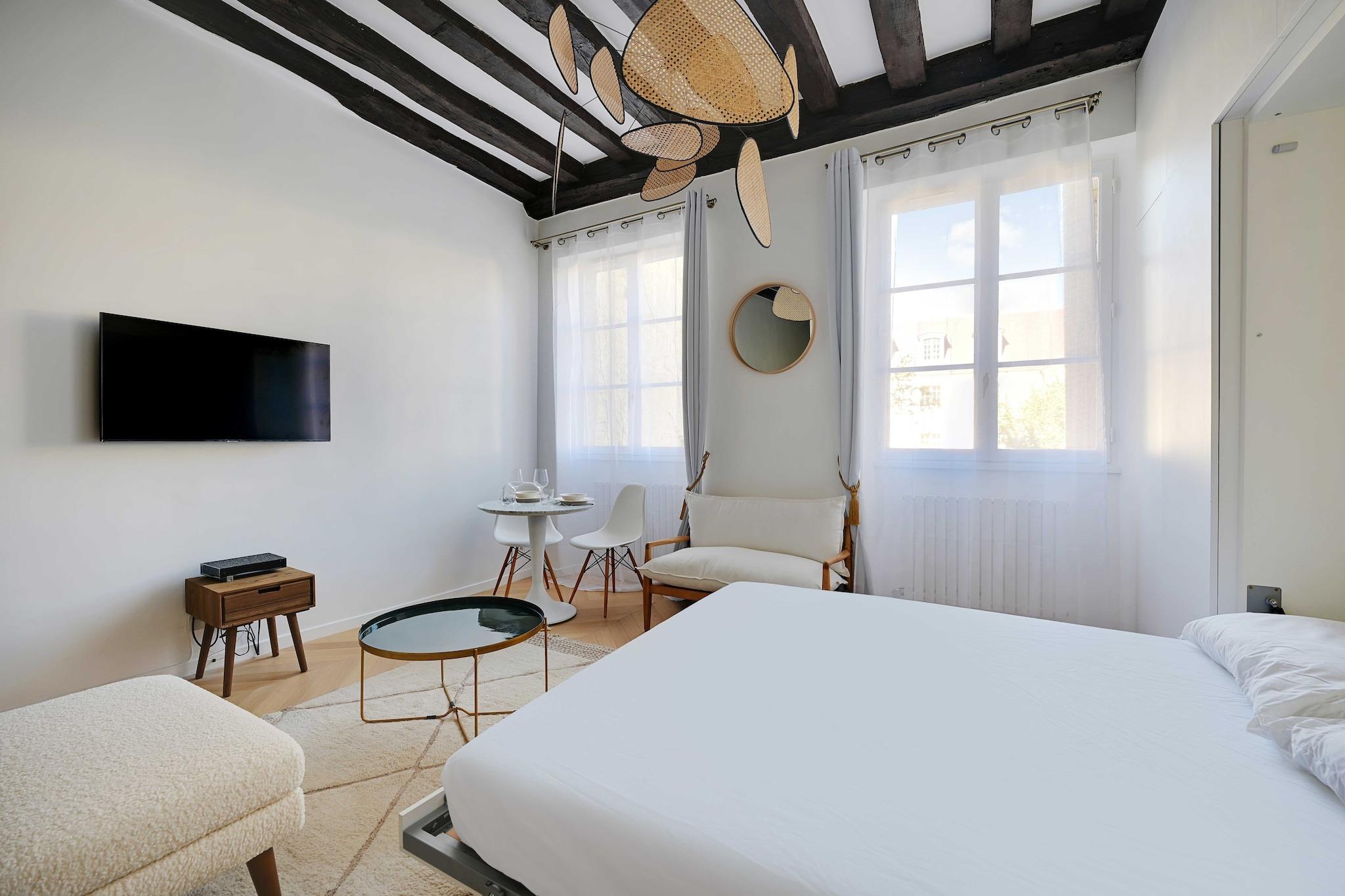 På 2. etage: (Køkken(kakkelovn, kogeplade(induktion), elkedel, brødrister, kaffemaskine, combi-mikroovn, opvaskemaskine , køleskab, elektriske kogeplader, , ), Stue/soveværelse(, dobbeltseng, Fjernsyn), badeværelse(bruser, håndvask, toilet, strygejern, føntørrer, )) , , , vaskemaskine, varme, Håndklæder/sengelinned (inkl.), , Carbon monoxide detector, Downtown, Enhanced cleaning practices, Long term stays allowed, Room-darkening shades