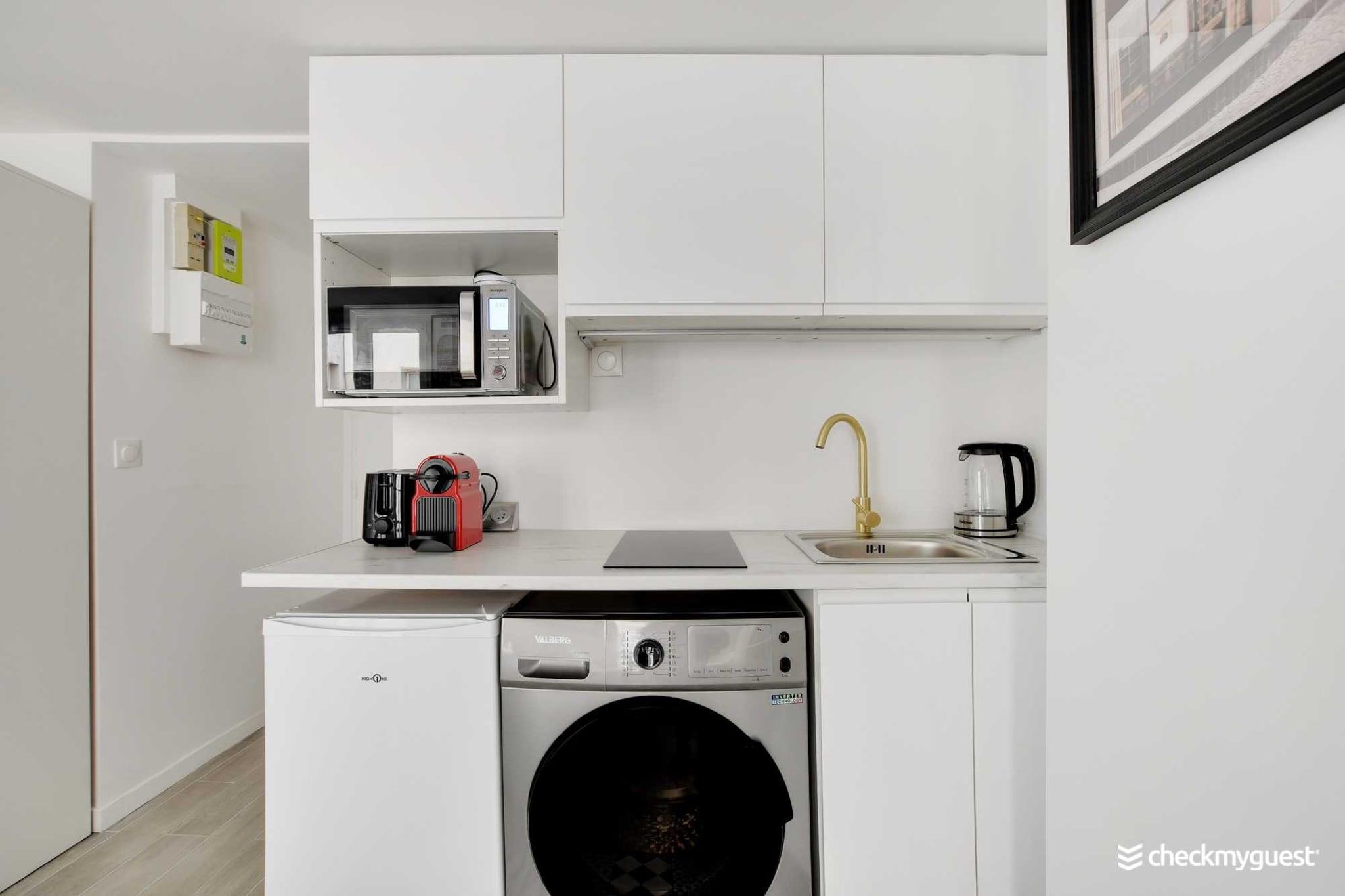 På 3. etage: (spisestue(spisebord), Køkken(kakkelovn, elkedel, brødrister, kaffemaskine, mikrobølgeovn, køleskab, ), Stue/soveværelse(, dobbeltseng, Fjernsyn), badeværelse(bruser, håndvask, toilet)) , , , Førstehjælp, Legeområde, vaskemaskine, varme, strygejern, føntørrer, Håndklæder/sengelinned (inkl.), , , Carbon monoxide detector, Cleaning Disinfection, Enhanced cleaning practices