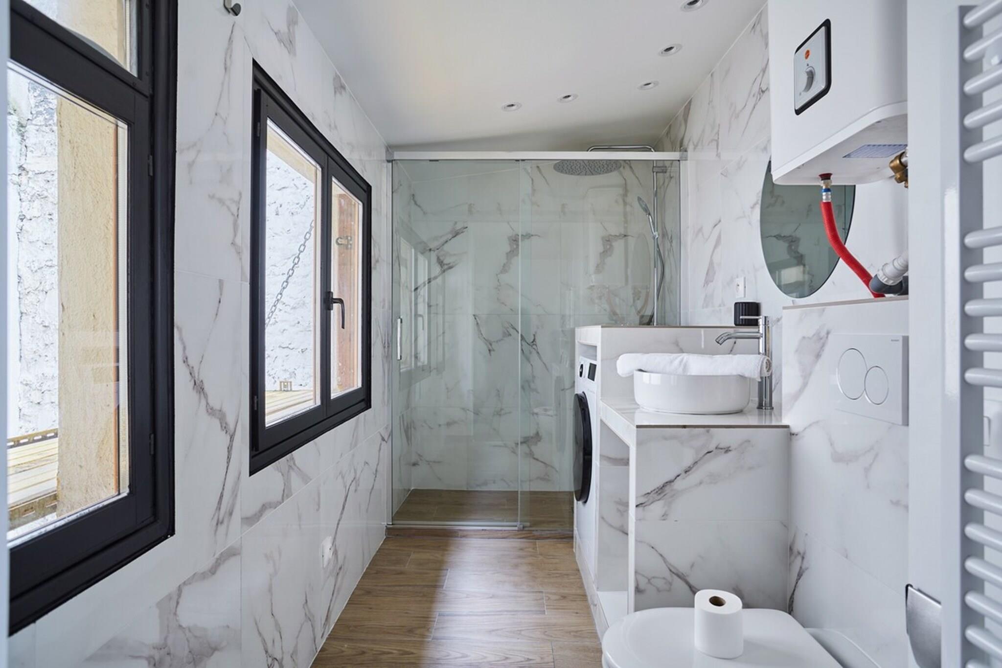 På 3. etage: (Stue(enkeltsovesofa, Fjernsyn), Køkken(spisebord, elkedel, brødrister, kaffemaskine, ovn, mikrobølgeovn, opvaskemaskine , køleskab, fryser, , , Baking sheet, Wine glasses), soveværelse(Queen Bed), soveværelse(Queen Bed), badeværelse(bruser, toilet), badeværelse(bruser, toilet)) , , , Førstehjælp, tørretumbler, vaskemaskine, varme, klimaanlæg, strygejern, føntørrer, , , , Carbon monoxide detector, Coffee, Downtown, Shower gel