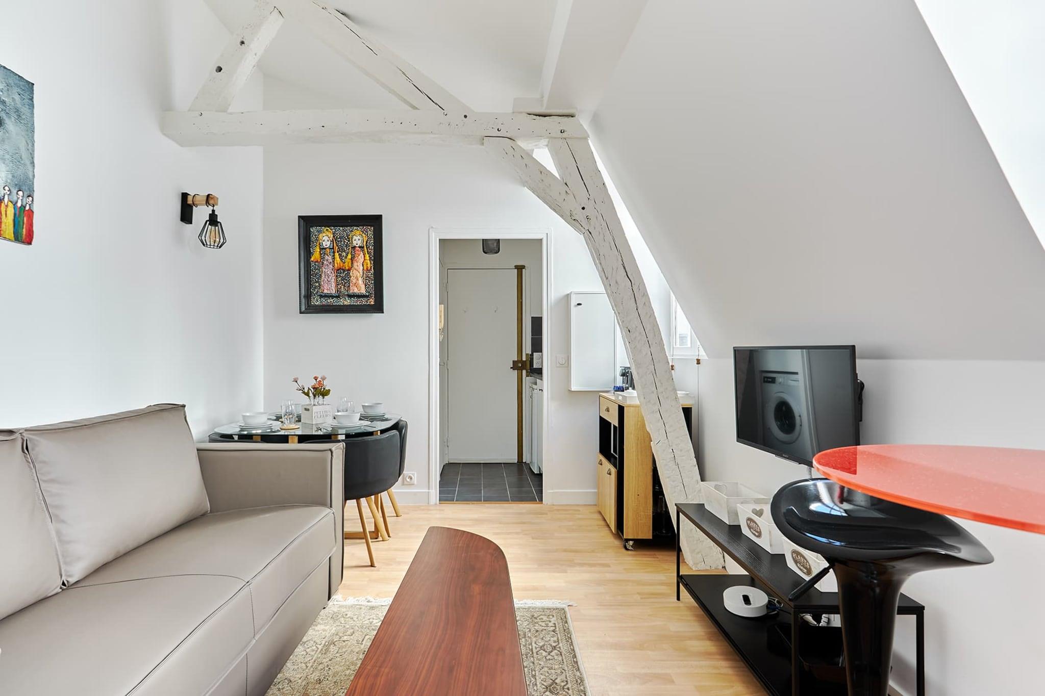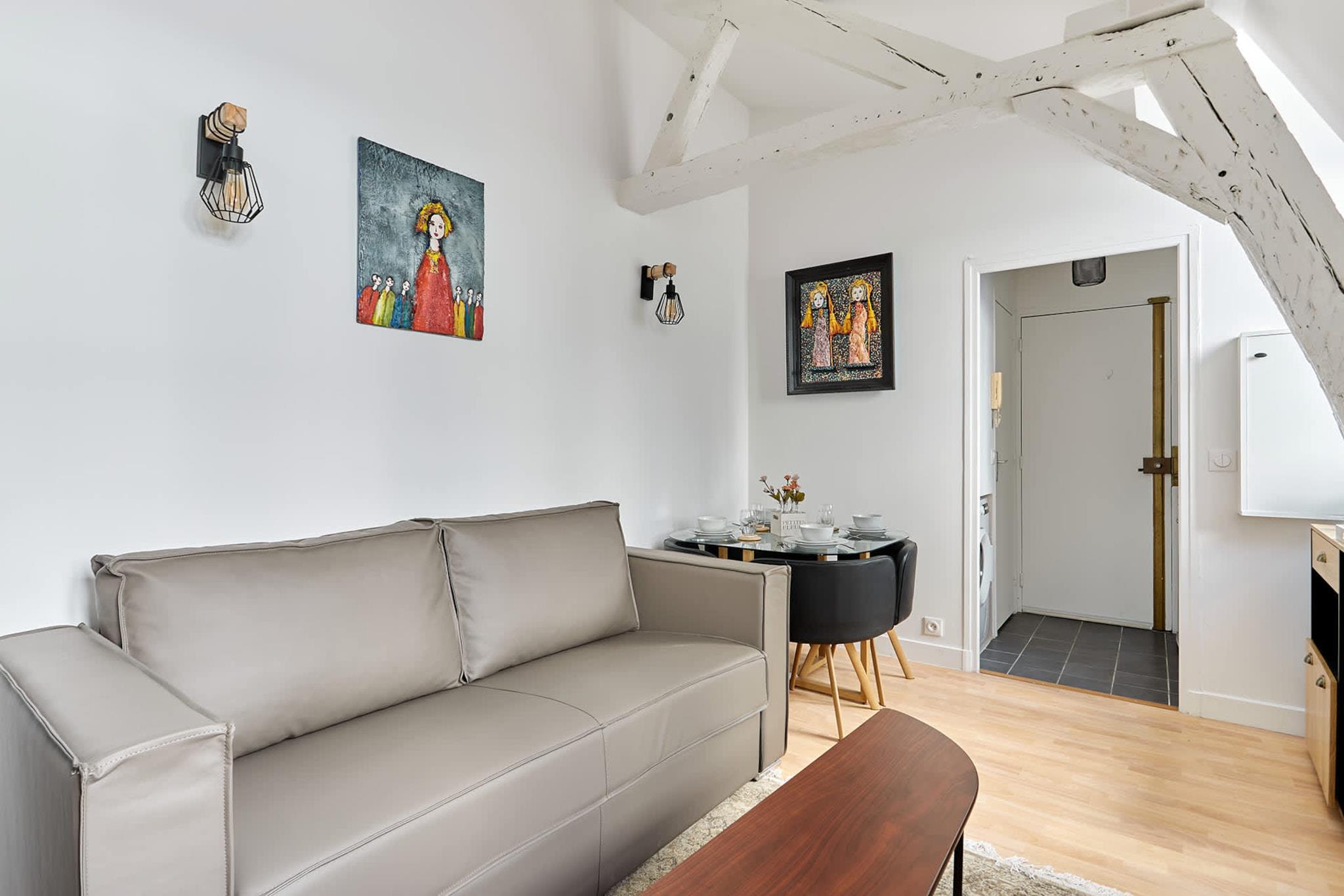 Velkommen til vores charmerende lejlighed i hjertet af Marais, et af Paris' mest ikoniske kvarterer, kendt for sine livlige gågader og den tætte beliggenhed til den smukke Place des Vosges. Lejligheden blander moderne komfort med autentisk charme og er fuldt udstyret og ideel til en perfekt parisisk ferie med familie eller venner, midt i et af hovedstadens mest eftertragtede områder.
