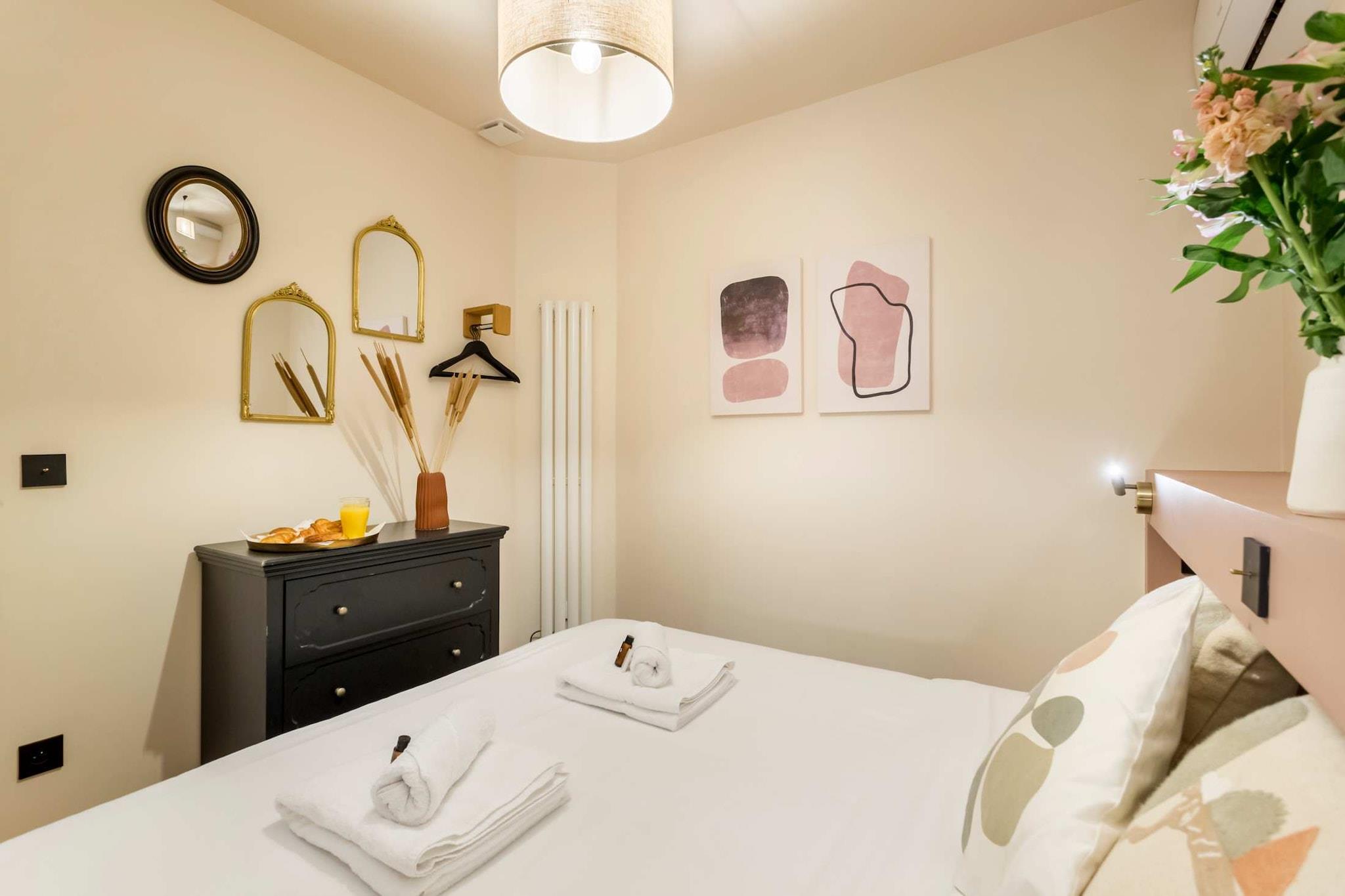 Denne lejlighed med aircondition og unikke indretning er en fredelig oase i hjertet af Marais-kvarteret. Beliggende i en træbeklædt gårdhave kombinerer den ro med en varm atmosfære. Den har plads til op til 8 personer. Beliggende mellem Place des Vosges og Carnavalet Museum, vil du opleve et drømmeophold i denne lejlighed med 3 soveværelser og 2 badeværelser. Kommentarer