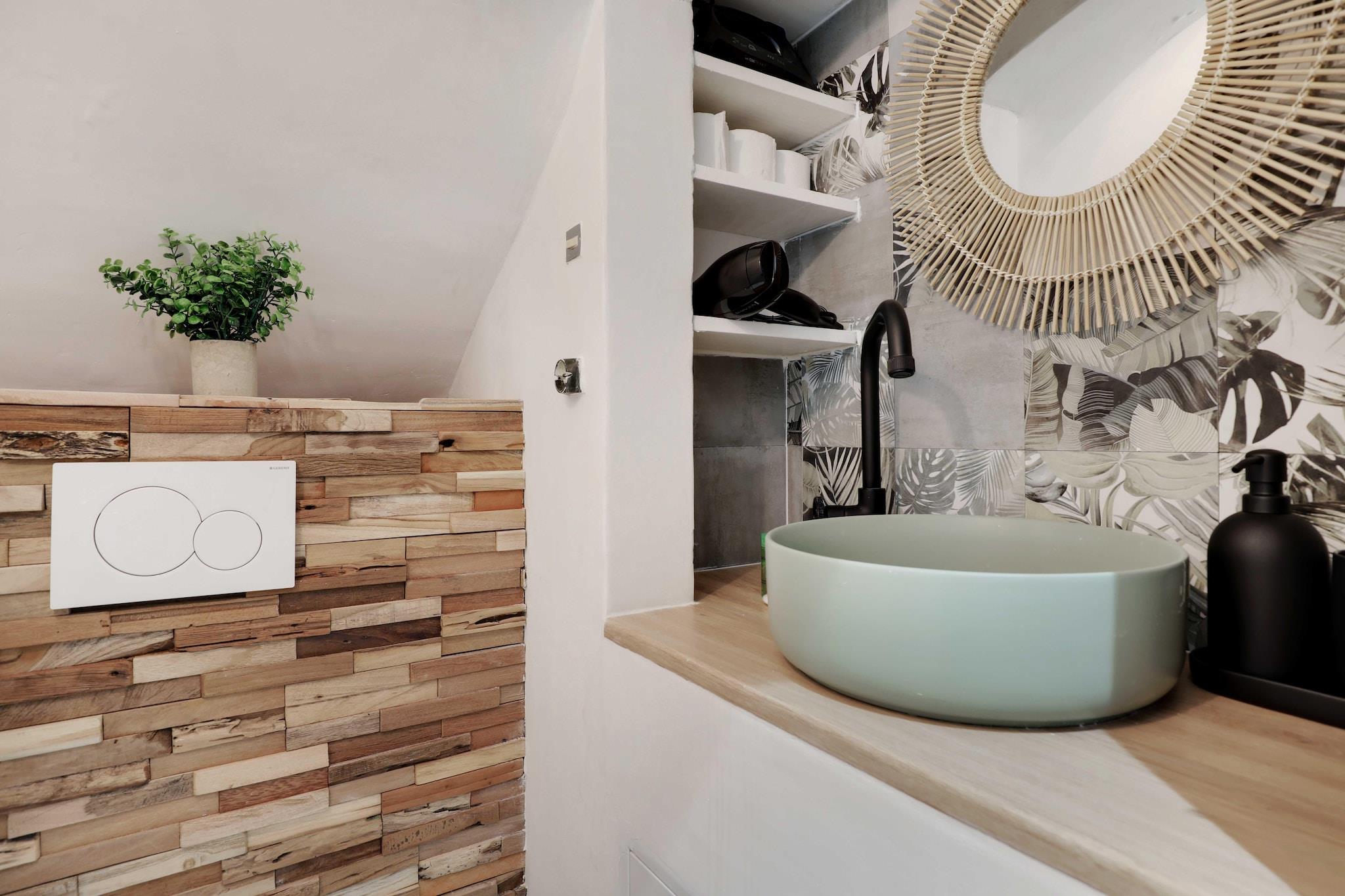 Stueetage: (åbent køkken(spisebord, kakkelovn, kogeplade, elkedel, brødrister, kaffemaskine, mikrobølgeovn, køleskab, , ), Stue/soveværelse(, dobbeltseng, Fjernsyn, spisebord), badeværelse(bruser, håndvask, toilet, Håndklæder/sengelinned (inkl.), , )) , , , , Førstehjælp, Legeområde, varme, strygejern, føntørrer, , Carbon monoxide detector, Cleaning Disinfection, Downtown, Enhanced cleaning practices, High touch surfaces disinfected, Long term stays allowed, Room-darkening shades, Town