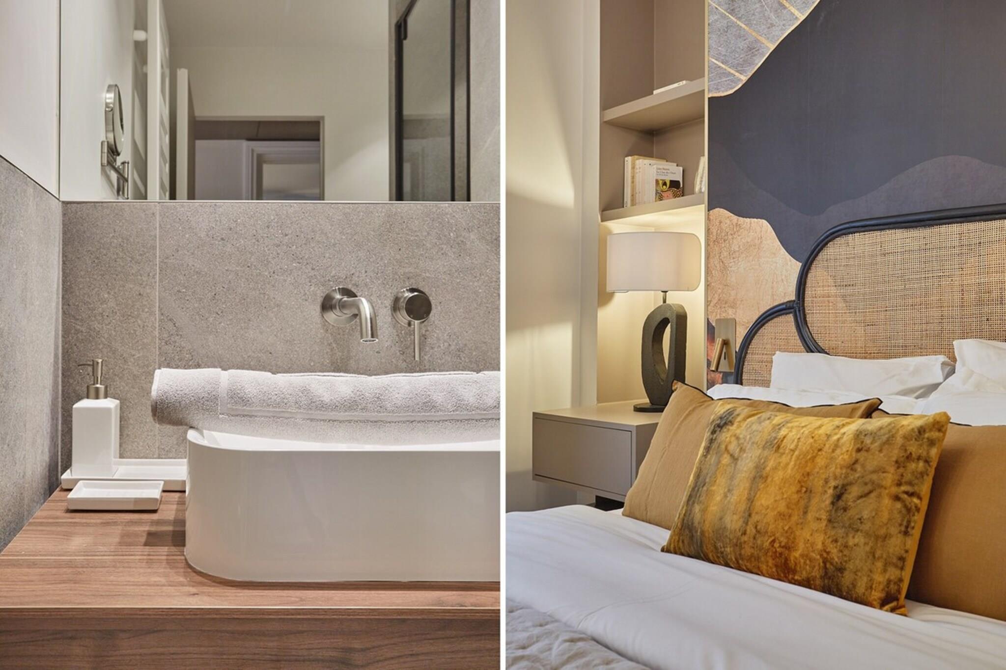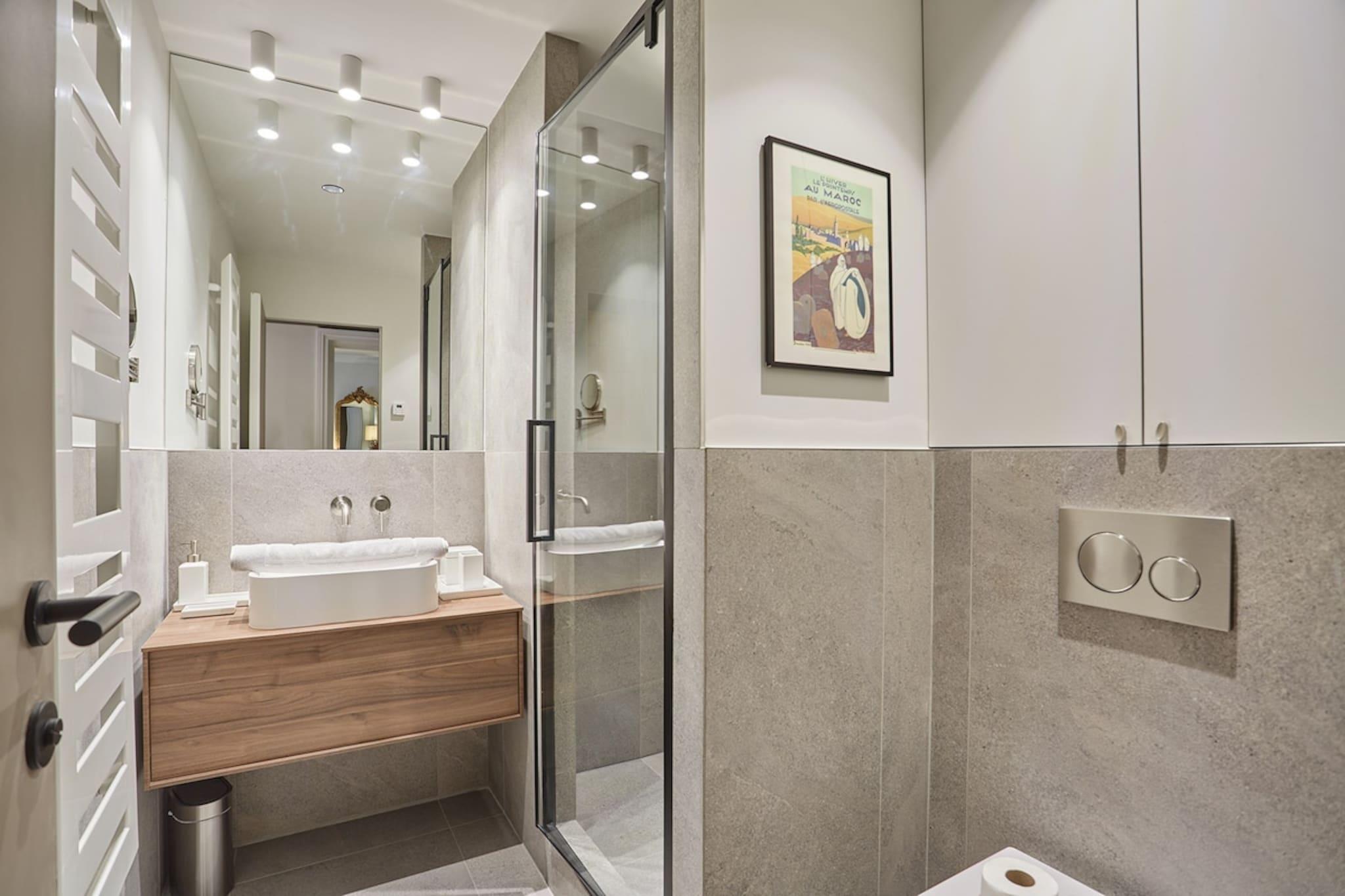 På 1. etage: (Stue(dobbeltsovesofa), Køkken(spisebord, elkedel, brødrister, kaffemaskine, mikrobølgeovn, opvaskemaskine , køleskab, fryser, varme, , , Baking sheet, Wine glasses), soveværelse(Queen Bed), Soveværelse med badeværelse(bruser, toilet, Queen Bed), badeværelse(bruser, toilet), toilet(toilet)) , , , Førstehjælp, Fjernsyn, tørretumbler, vaskemaskine, klimaanlæg, strygejern, føntørrer, , , Carbon monoxide detector, Cleaning products, Coffee, Downtown, Extra pillows and blankets, Room-darkening shades, Shower gel