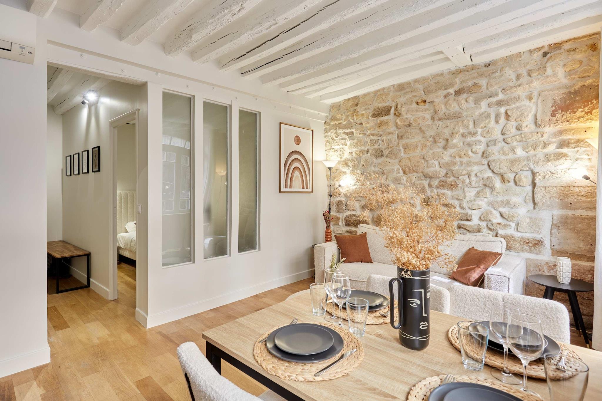 Velkommen til vores fantastiske lejlighed med aircondition og to soveværelser i hjertet af Paris, ved foden af Jardin des Plantes, halvvejs mellem Notre-Dame-de-Paris, Seinens bredder og Panthéon. I et studenterkvarter kendt for sine mange restauranter og butikker kan du slentre langs hovedstadens mest ikoniske gader. Denne smagfuldt indrettede, moderne, varme, elegante og fuldt udstyrede lejlighed er perfekt til et mindeværdigt ophold med familie eller venner.