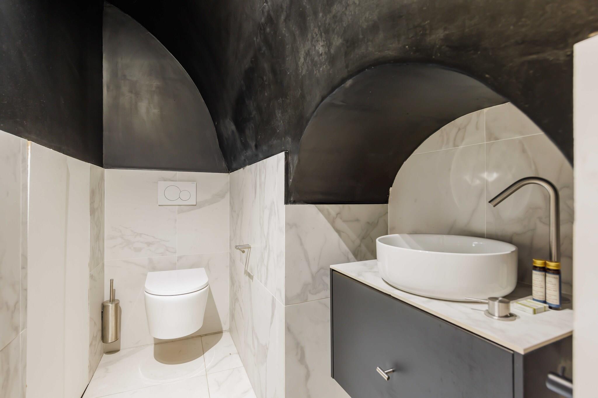 Stueetage: (Stue(, , enkeltsovesofa, Fjernsyn), Køkken(kakkelovn, elkedel, brødrister, kaffemaskine, mikrobølgeovn, køleskab, ), soveværelse(Queen Bed), soveværelse(Queen Bed), badeværelse(bruser, føntørrer, Håndklæder/sengelinned (inkl.), ), badeværelse(bruser, føntørrer, Håndklæder/sengelinned (inkl.), ), toilet(toilet), toilet(toilet)) , , , Førstehjælp, Legeområde, vaskemaskine, varme, klimaanlæg, strygejern, , , , Carbon monoxide detector, Cleaning Disinfection, Downtown, Enhanced cleaning practices, High touch surfaces disinfected, Long term stays allowed, Room-darkening shades, Town