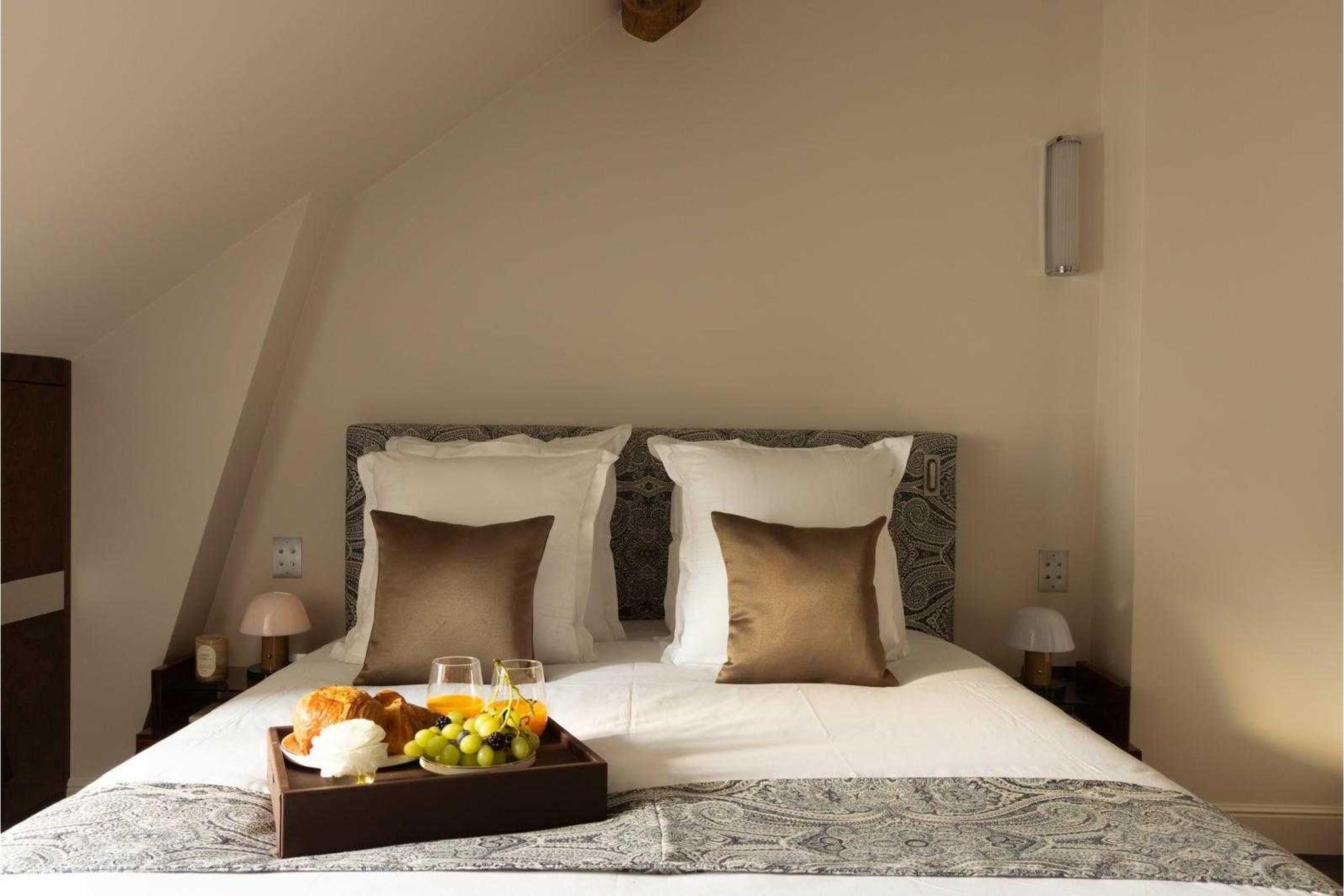 Rummet:- Kun et stenkast fra Assemblée Nationale dyrker Hôtel du Palais Bourbon en vis kunst af ro. Beliggende på en stille gade i det 7. arrondissement tilbyder det et diskret tilflugtssted for dem, der søger et pust af frisk luft og et øjebliks ro. Bag den typisk parisiske facade gemmer sig en elegant og intim adresse. Nøgne linjer, ædle materialer, naturligt lys og beroligende rummeligheder. Her er ånden boligagtig, velkomsten oprigtig. Du vil føle dig hjemme her, som et velkendt tilflugtssted, hvortil du ikke kan vente med at vende tilbage. Dit ophold: Omhyggeligt designet til komfort Hôtel du Palais Bourbons ånd er også og frem for alt oprigtig gæstfrihed, der lover tilgængelighed, opmærksomhed og ekspertise. Hotellet blev fuldstændig renoveret i 2025 og kombinerer moderne komfort. Lakeret træ, bløde tekstiler, blød belysning... Intet er overladt til tilfældighederne; alt er designet til at sikre, at hvert øjeblik flyder glat, og at hver detalje er helt rigtig. Vælg det værelse, der passer til dig: På Hôtel de Palais Bourbon byder vi dig velkommen til et unikt... Parisisk adresse, designet med dig i tankerne, uden at gå på kompromis med æstetik eller komfort. Hvert værelse og suite har en kingsize-seng med generøs sengetøj, et skrivebordsområde og et badeværelse med bruser og naturlige Typologie-hudplejeprodukter. Et diskret kaffeområde fuldender ensemblet med en Nespresso®-maskine, elkedel, te og kapsler - så du kan nyde et øjeblik i dit eget tempo uden at forlade roen på dit værelse. Alle værelser er omhyggeligt designet ned til mindste detalje og tilbyder problemfri forbindelse: hurtig Wi-Fi, flere stikkontakter, USB-porte indbygget i hovedgærderne, QR-koder til roomservicebestillinger og meget mere. De blev fuldstændig renoveret i 2025 og er lydisolerede, så vi garanterer dig en god nats søvn. Gæsteadgang: Layout: (Stue (dobbelt kingsize-seng, TV, minibar, elkedel, kaffemaskine, varme, aircondition, lagner inkl., Netflix, kuliltedetektor, strygebræt, strygejern efter behov), badeværelse (bruser, håndvask, toilet, hårtørrer, håndklæder inkl., shampoo, sæbe)).