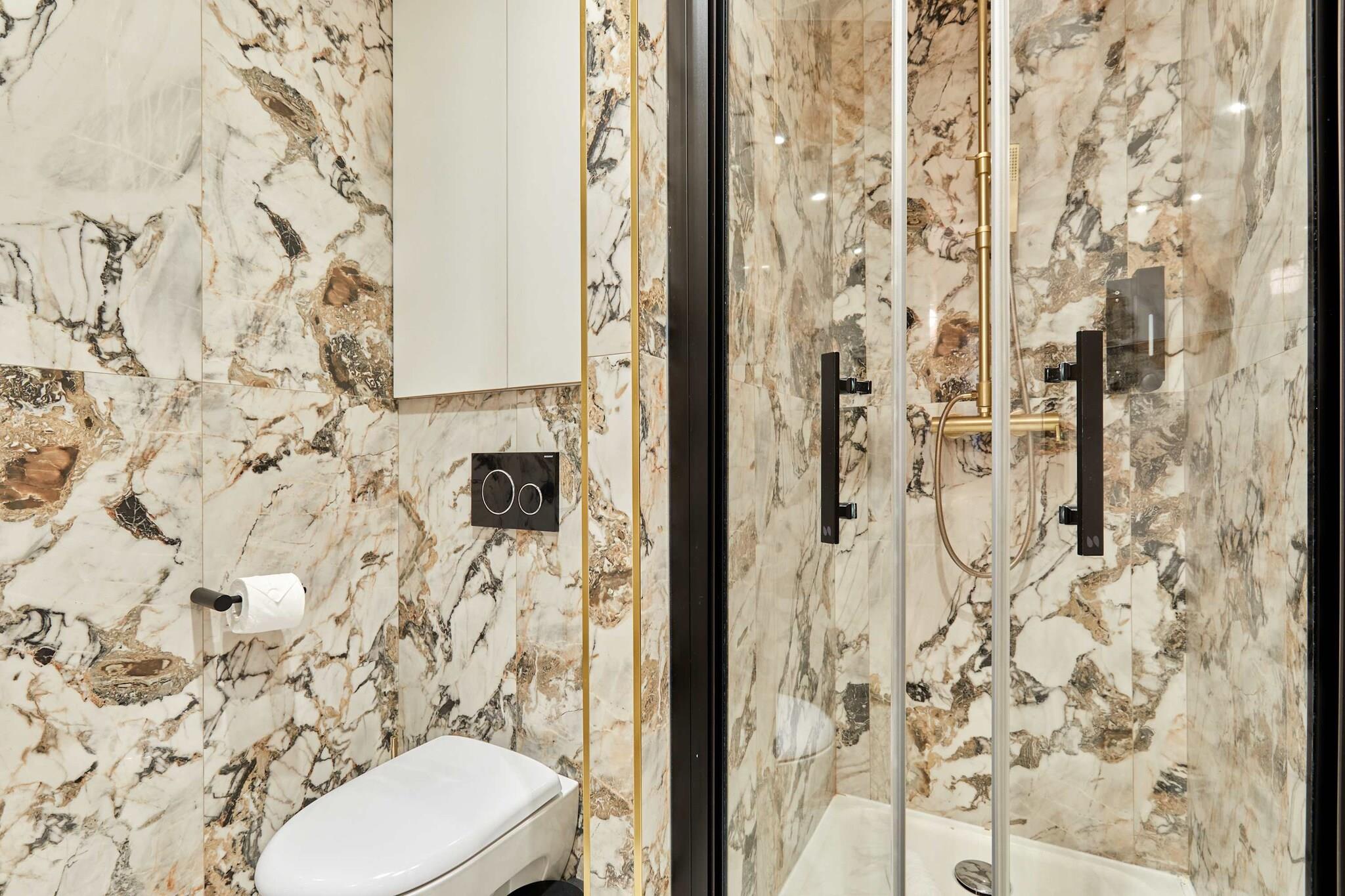 På 4. etage: (Stue(dobbeltsovesofa, Fjernsyn, sofahjørne), Køkken(kakkelovn, elkedel, brødrister, kaffemaskine, ovn, mikrobølgeovn, køleskab, fryser, , , Coffee, Wine glasses), soveværelse(dobbeltseng), badeværelse(bruser, håndvask, toilet)) , , , , , Førstehjælp, Legeområde, tørretumbler, vaskemaskine, varme, klimaanlæg, strygejern, føntørrer, Håndklæder/sengelinned (inkl.), , , , , , Carbon monoxide detector, Cleaning Disinfection, Downtown, Enhanced cleaning practices, High touch surfaces disinfected, Long term stays allowed, Town