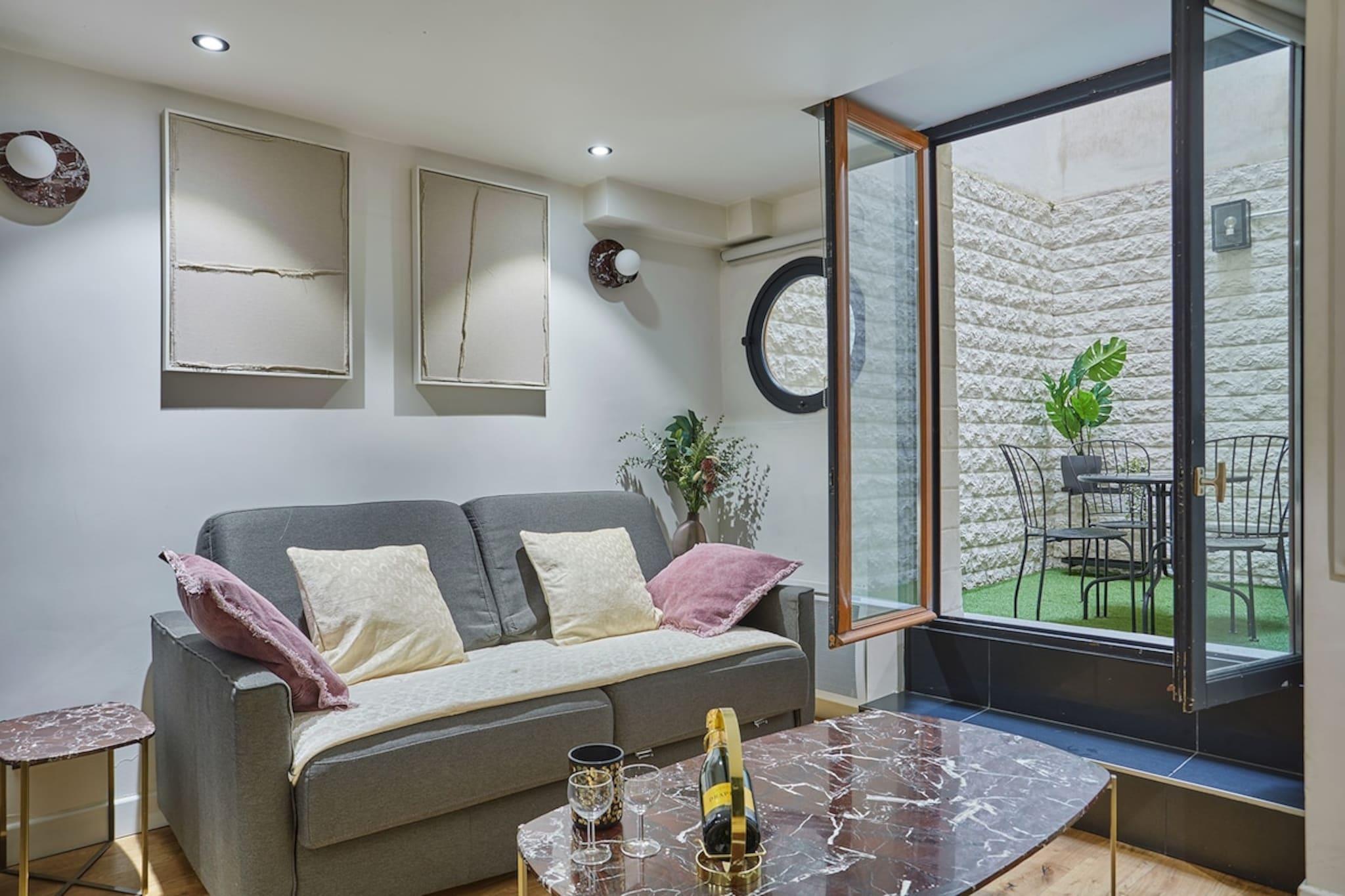 Velkommen til vores sublime lejlighed med terrasse i Paris Vi er glade for at kunne præsentere vores lejlighed i den luksuriøse Rue du Faubourg Saint-Honoré. Midtvejs mellem Place de la Madeleine, Elysée-paladset og Place de la Concorde kombinerer denne smagfuldt indrettede lejlighed modernitet, elegance og varme for at tilbyde dig et uforglemmeligt ophold i Paris med familie eller venner.