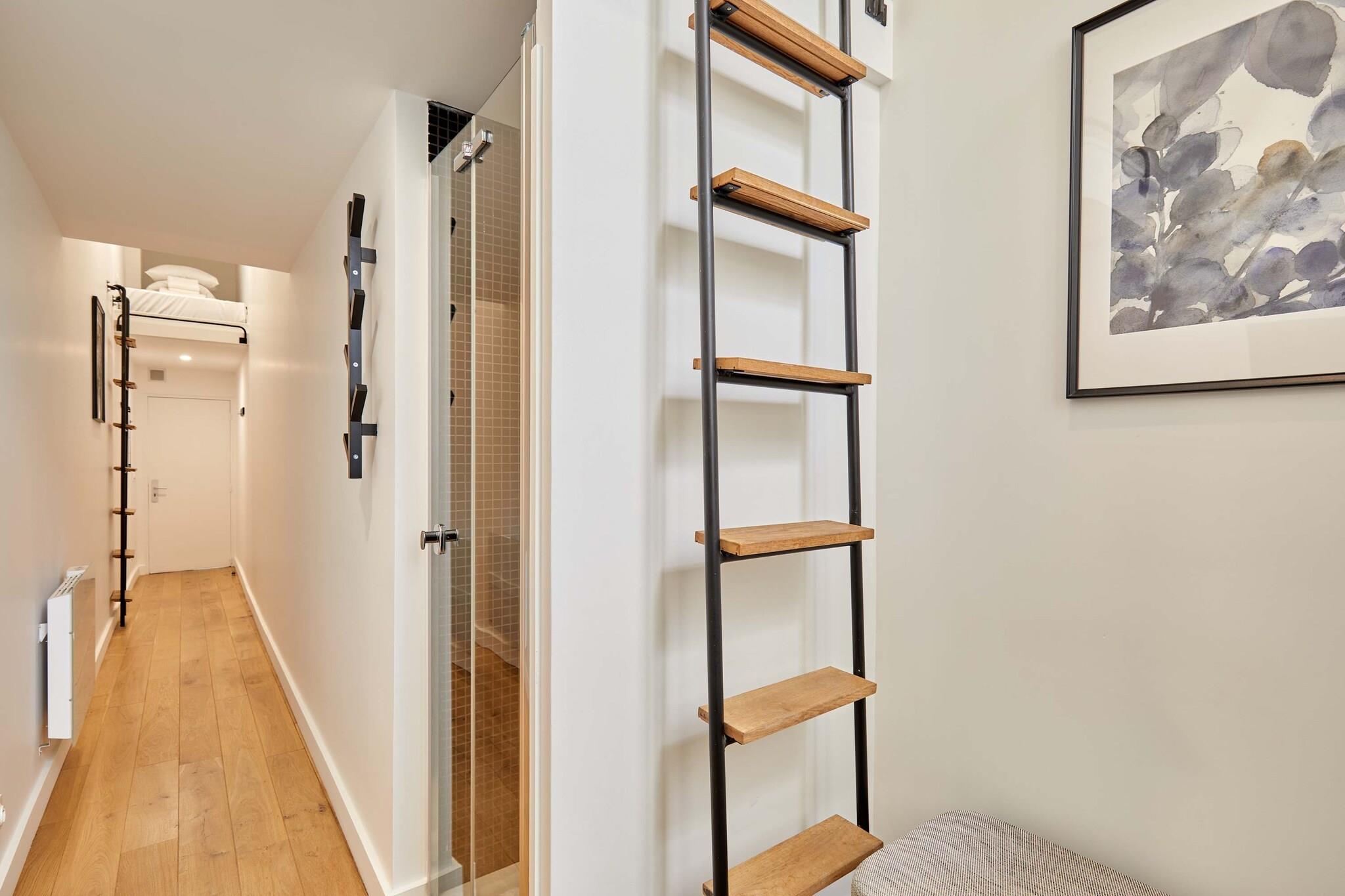 Charmerende studiolejlighed i hjertet af Paris, på den prestigefyldte rue du Faubourg Saint-Honoré, få skridt fra Champs-Élysées, Parc Monceau og byens fineste butikker. Moderne, veludstyret og smagfuldt indrettet med to enkeltsenge på en mezzanin, der udnytter pladsen optimalt. Perfekt til et parisisk ophold, der kombinerer shopping, kultur og gastronomi.