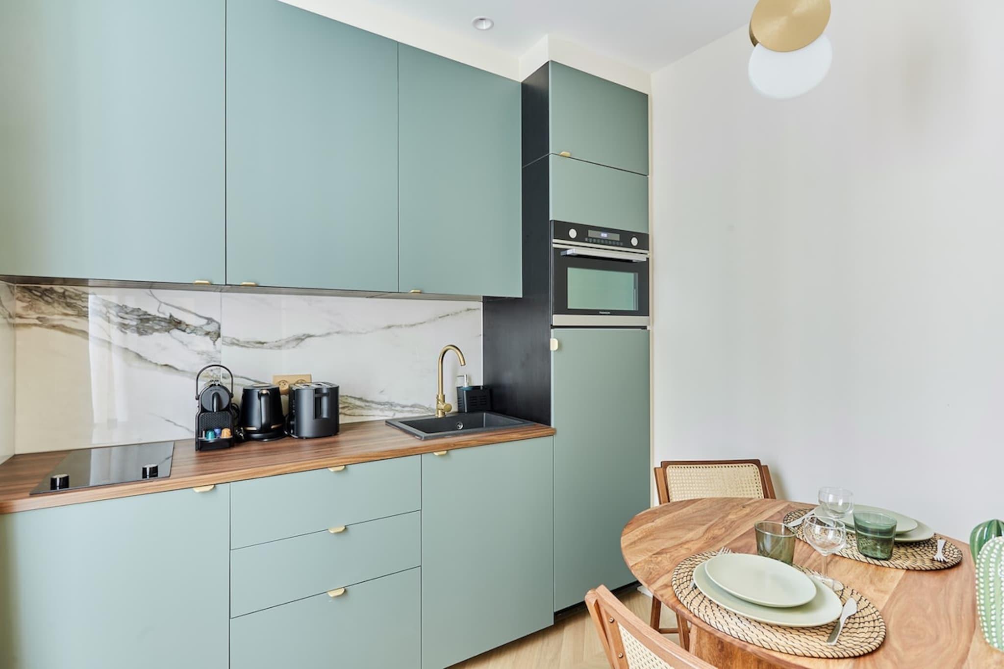 På 1. etage: (Køkken(spisebord, elkedel, brødrister, kaffemaskine, mikrobølgeovn, køleskab, fryser, varme, , , Baking sheet, Wine glasses), soveværelse(dobbeltseng), badeværelse(bruser), toilet(toilet)) , , , Førstehjælp, Fjernsyn, tørretumbler, vaskemaskine, klimaanlæg, strygejern, føntørrer, , , Carbon monoxide detector, Cleaning products, Coffee, Downtown, Extra pillows and blankets, Room-darkening shades, Shower gel