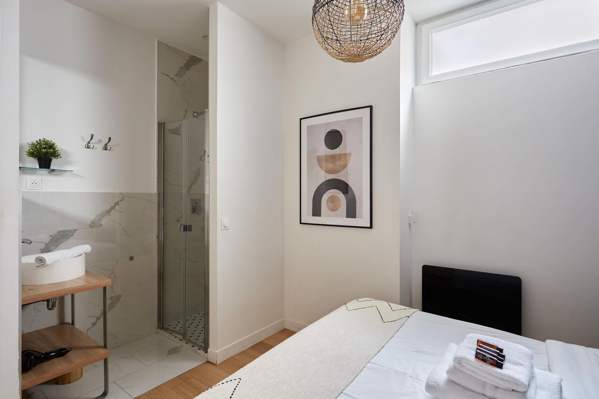 Velkommen til vores etværelseslejlighed i stueetagen, fuldstændig renoveret, 50 meter fra den berømte Moulin Rouge og det meget livlige Montmartre-distrikt og Rue des Martyrs. Lejligheden har en ideel beliggenhed i det 9. arrondissement, 15 minutters gang fra Sacré-Cœur, stormagasinerne (Galerie Lafayette) og Place de l'Opera. Dette er det ideelle kvarter til en typisk parisisk oplevelse.