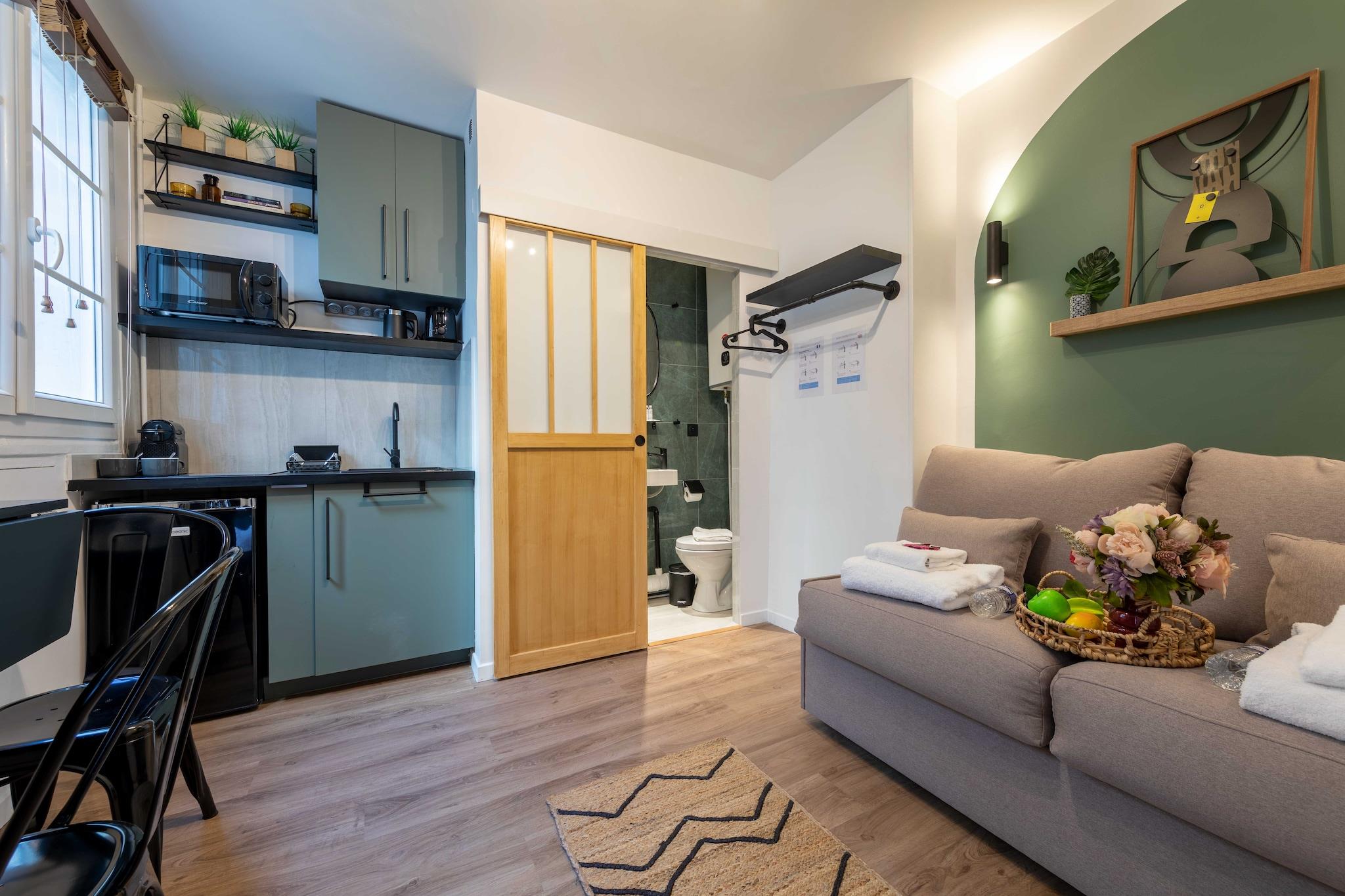 På 1. etage: (åbent køkken(spisebord, kakkelovn, elkedel, brødrister, komfur, kaffemaskine, mikrobølgeovn, køleskab, , , Wine glasses), Stue/soveværelse(enkeltsovesofa), badeværelse(bruser, toilet)) , , , Fjernsyn, varme, strygejern, føntørrer, Håndklæder/sengelinned (inkl.), , , Carbon monoxide detector, Cleaning Disinfection, Downtown, Enhanced cleaning practices, High touch surfaces disinfected, Long term stays allowed, Town