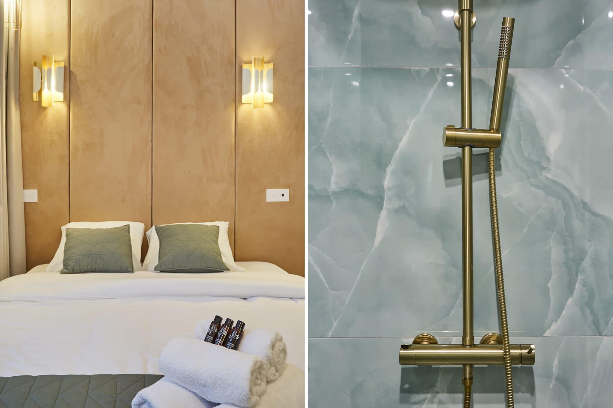 Stueetage: (Køkken(elkedel, brødrister, kaffemaskine, ovn, mikrobølgeovn, opvaskemaskine , køleskab, fryser, , , Baking sheet, Coffee, Wine glasses), stue / spisestue(Fjernsyn, spisebord, sofahjørne), Soveværelse med badeværelse(bruser, håndvask, toilet, Håndklæder inkl., , Queen Bed), Soveværelse med badeværelse(bruser, håndvask, toilet, Håndklæder inkl., , Queen Bed)) , , , , , Førstehjælp, Legeområde, Fjernsyn, tørretumbler, vaskemaskine, varme, klimaanlæg, strygejern, føntørrer, Håndklæder/sengelinned (inkl.), , , , Baking sheet, Carbon monoxide detector, Coffee, Downtown, Wine glasses