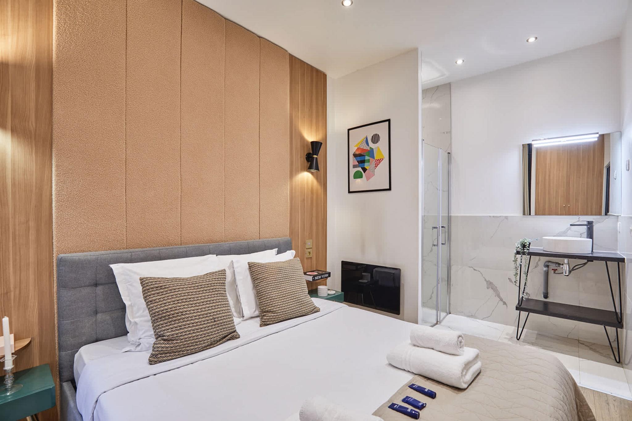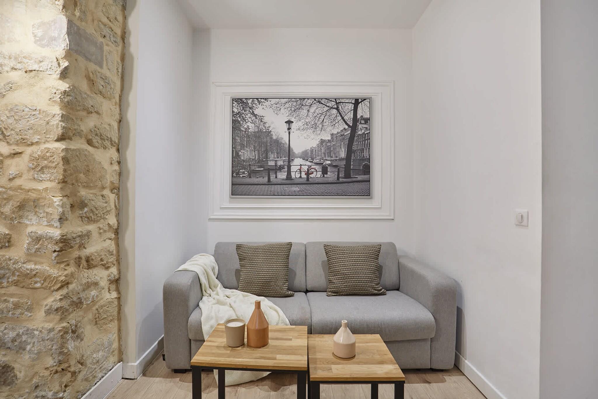 Stueetage: (Stue(dobbeltsovesofa, dobbeltsovesofa, Fjernsyn), Køkken(spisebord, elkedel, brødrister, kaffemaskine, mikrobølgeovn, køleskab, fryser, varme, , , Baking sheet, Wine glasses), soveværelse(Queen Bed), soveværelse(Queen Bed), badeværelse(bruser, toilet, , Shower gel)) , , , Førstehjælp, vaskemaskine, strygejern, føntørrer, , , Cleaning products, Coffee, Downtown, Extra pillows and blankets, Room-darkening shades
