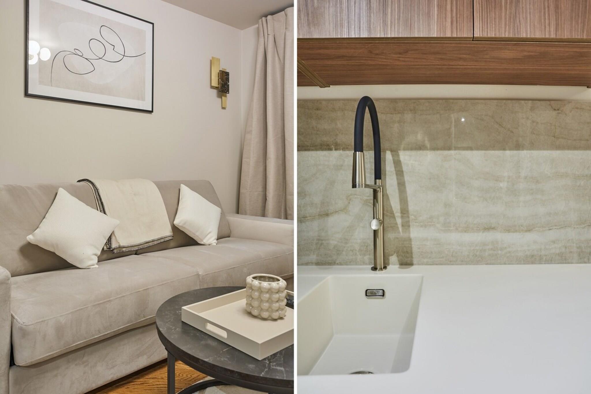 På 2. etage: (Stue(dobbeltsovesofa), Køkken(spisebord, kakkelovn, elkedel, brødrister, kaffemaskine, ovn, mikrobølgeovn, opvaskemaskine , køleskab, fryser, , , Wine glasses), soveværelse(dobbeltseng), badeværelse(bruser, toilet, )) , , , , , Førstehjælp, Legeområde, tørretumbler, vaskemaskine, varme, klimaanlæg, strygejern, føntørrer, Håndklæder/sengelinned (inkl.), , Carbon monoxide detector, Cleaning Disinfection, Downtown, Enhanced cleaning practices, High touch surfaces disinfected, Long term stays allowed, Town