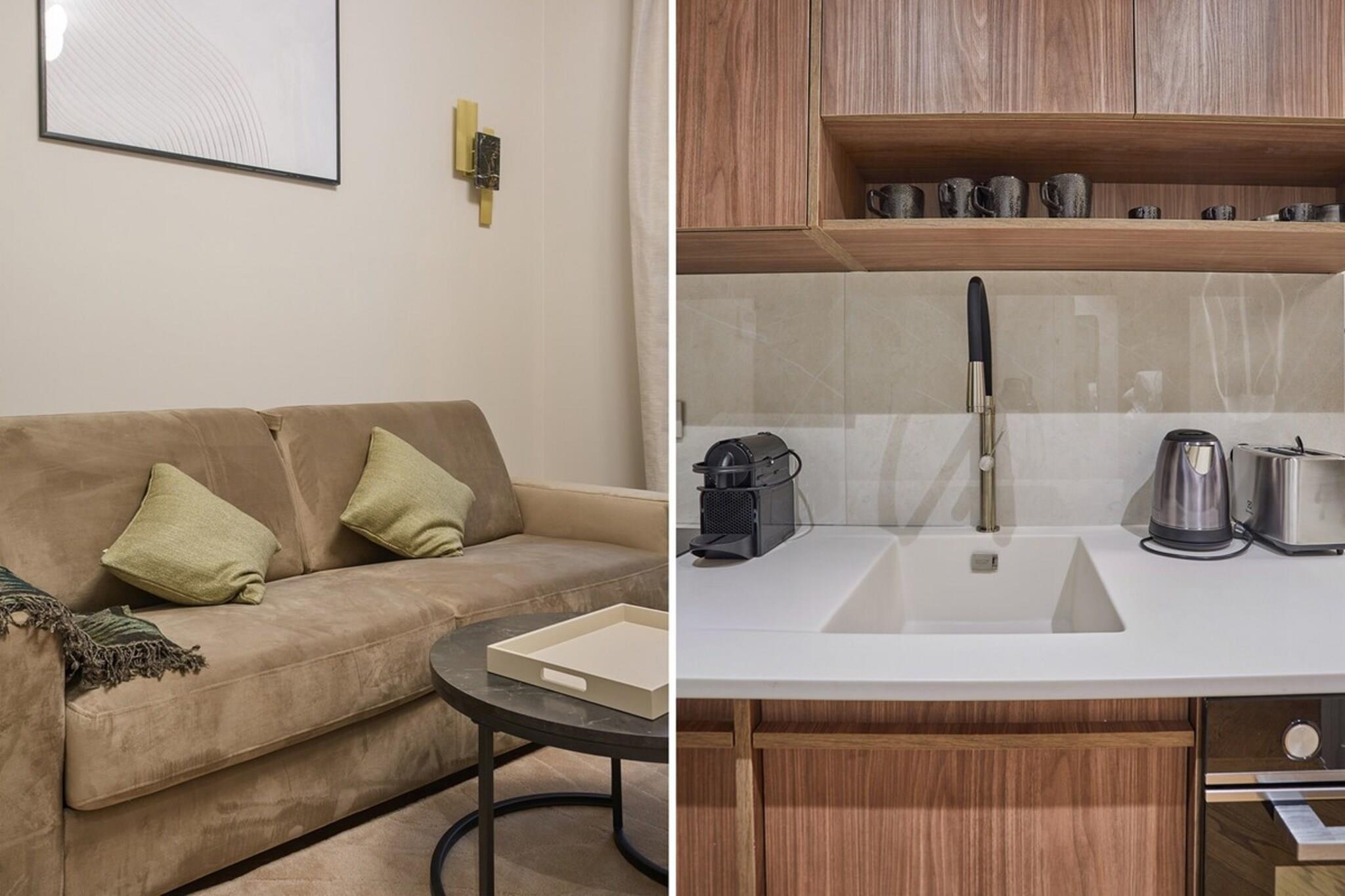 På 1. etage: (Stue(dobbeltsovesofa), Køkken(spisebord, elkedel, brødrister, kaffemaskine, mikrobølgeovn, køleskab, fryser, varme, , , Baking sheet, Wine glasses), soveværelse(Queen Bed), badeværelse(bruser, toilet)) , , , Førstehjælp, Fjernsyn, tørretumbler, vaskemaskine, strygejern, føntørrer, , , Carbon monoxide detector, Cleaning products, Coffee, Downtown, Extra pillows and blankets, Room-darkening shades, Shower gel