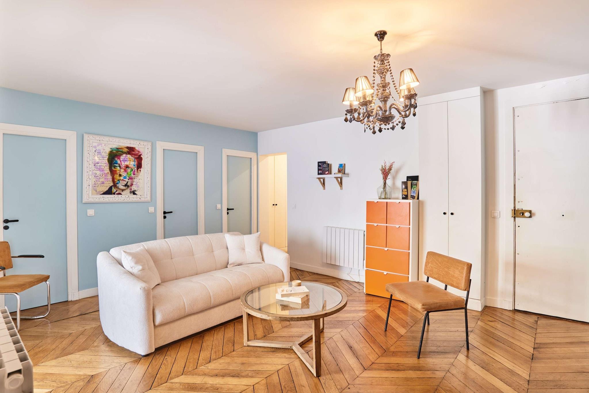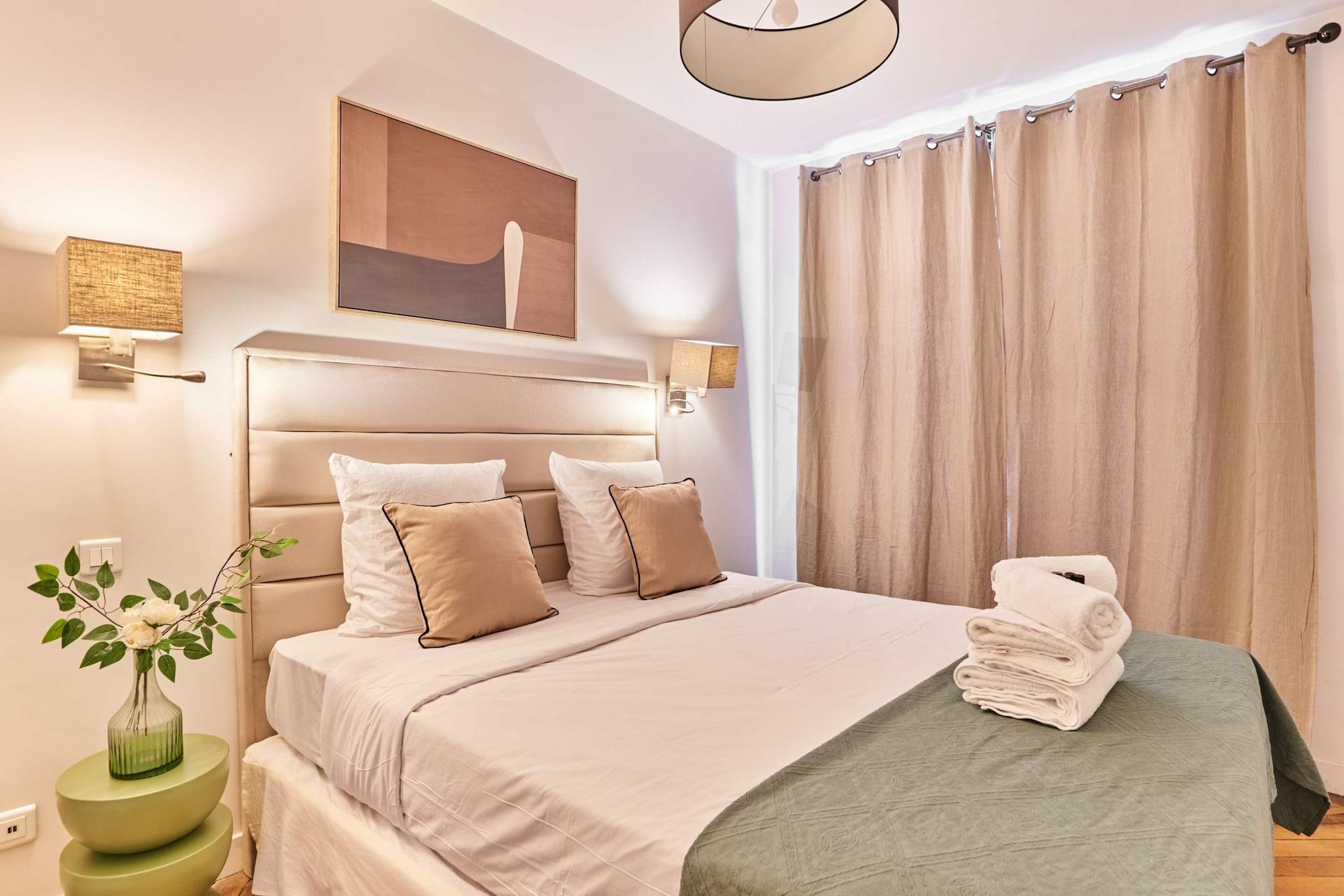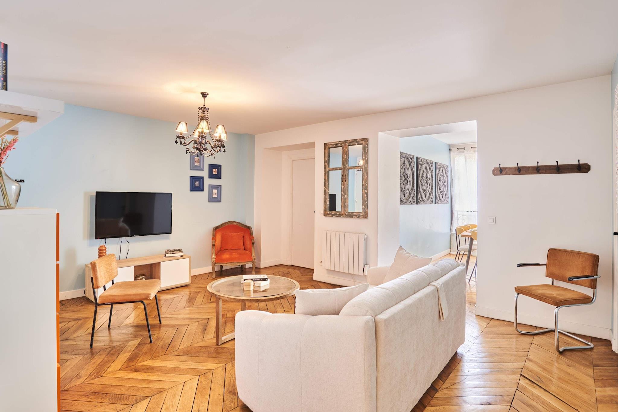 Oplev den parisiske charme i vores exceptionelle lejlighed! Beliggende i hjertet af Paris, på Grands Boulevards og kun få skridt fra Musée Grévin, er vores lejlighed det ideelle sted for et uforglemmeligt ophold. Den er rummelig, lys og smagfuldt indrettet, perfekt udstyret til at rumme familier og venner og tilbyder en total fordybelse i det parisiske liv.