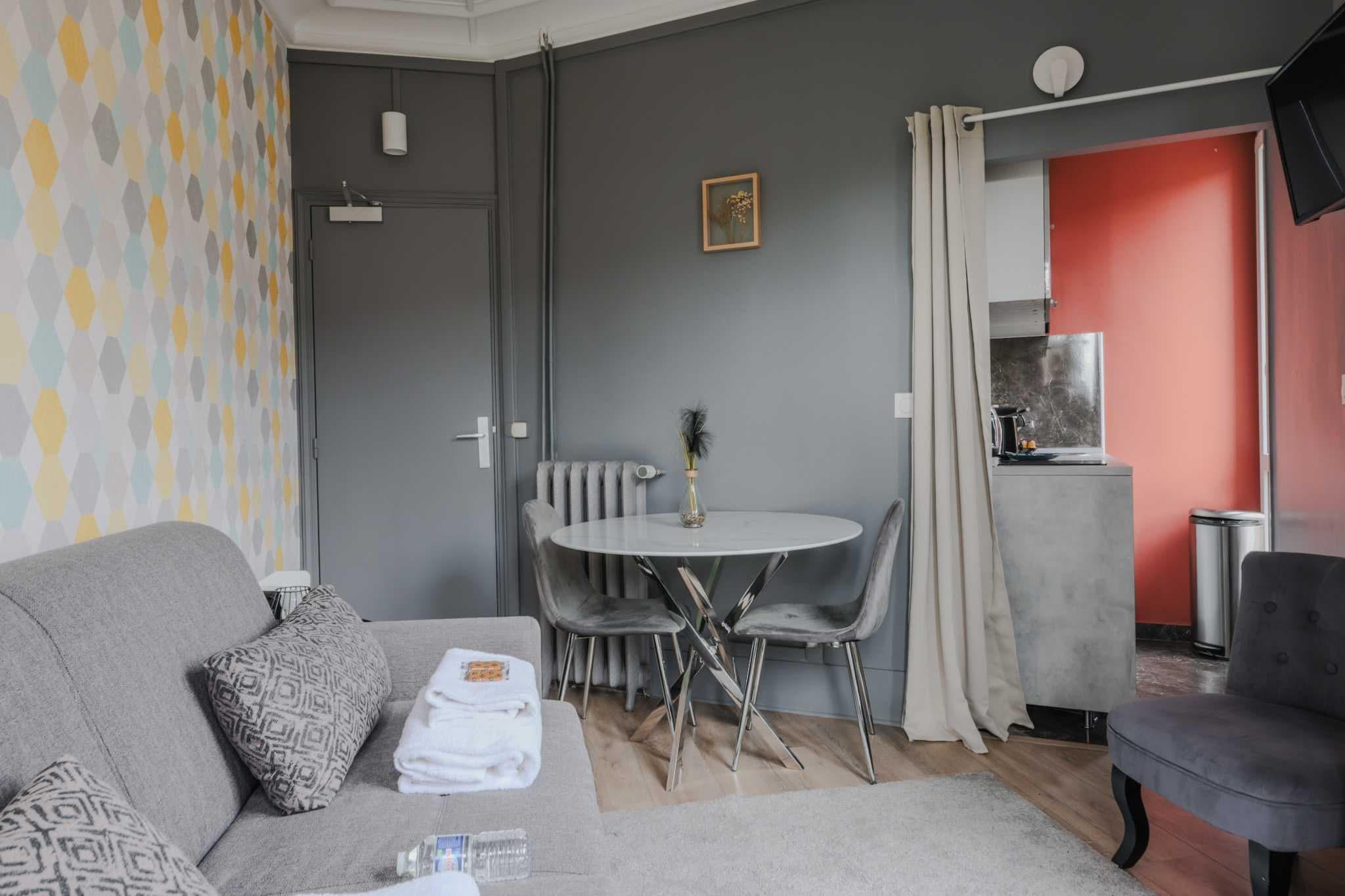 På 4. etage: (Køkken(kakkelovn, elkedel, brødrister, kaffemaskine, ovn, mikrobølgeovn, køleskab, , ), Stue/soveværelse(, , dobbeltsovesofa), badeværelse(håndvask, toilet, føntørrer, , )) , , varme, strygejern, Håndklæder/sengelinned (inkl.), , , Carbon monoxide detector, Cleaning Disinfection, Downtown, Enhanced cleaning practices, Long term stays allowed, Town