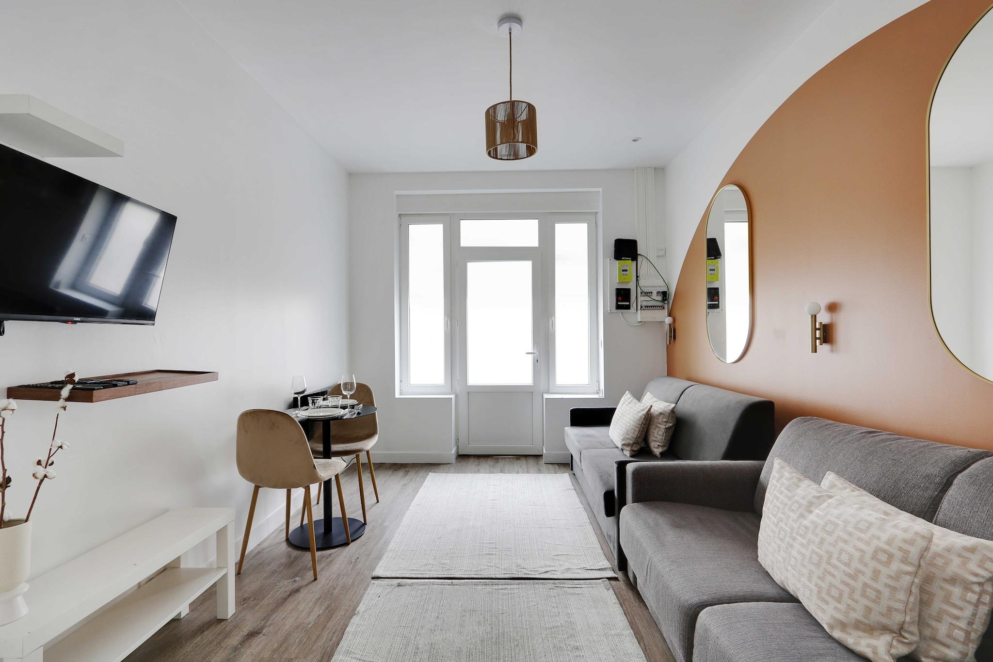 Stueetage: (Køkken(spisebord, kakkelovn, elkedel, brødrister, kaffemaskine, ovn, mikrobølgeovn, køleskab, elektriske kogeplader, , , Wine glasses), Stue/soveværelse(, dobbeltsovesofa, Fjernsyn), badeværelse(bruser, toilet, føntørrer, Håndklæder/sengelinned (inkl.), )) , , , , Førstehjælp, Legeområde, varme, strygejern, , , Carbon monoxide detector, Cleaning Disinfection, Cleaning before checkout, Downtown, Enhanced cleaning practices, High touch surfaces disinfected, Long term stays allowed, Room-darkening shades, Town