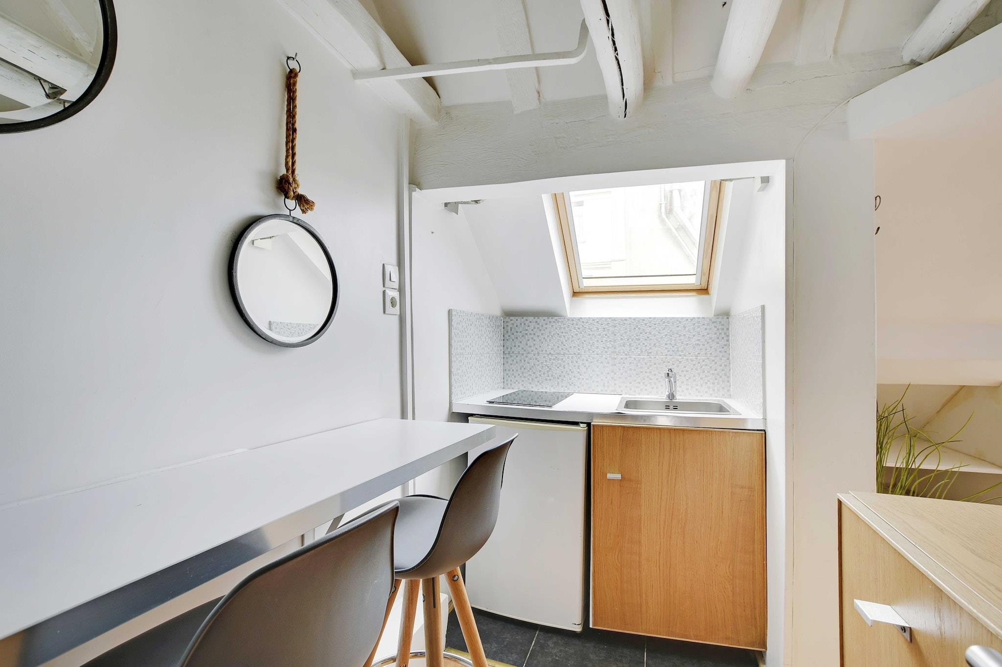 På 4. etage: (Køkken(spisebord, kakkelovn, elkedel, brødrister, kaffemaskine, ovn, køleskab, , ), Stue/soveværelse(, dobbeltsovesofa, Fjernsyn), badeværelse(bruser, toilet, Håndklæder/sengelinned (inkl.), , )) , , , Førstehjælp, Legeområde, varme, strygejern, føntørrer, , Carbon monoxide detector, Cleaning Disinfection, Downtown, Enhanced cleaning practices, High touch surfaces disinfected, Long term stays allowed, Town