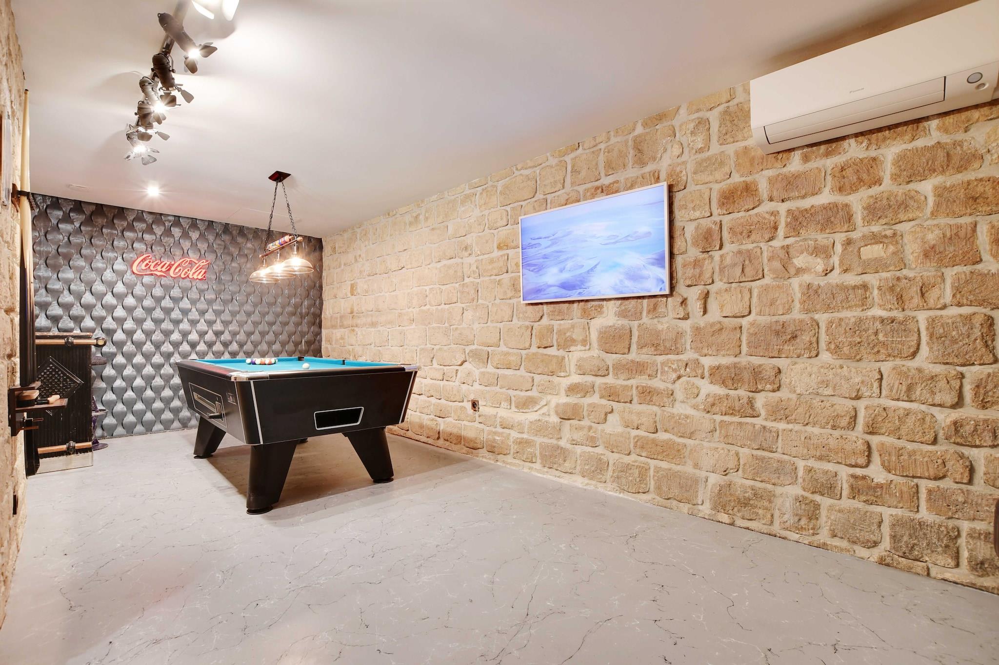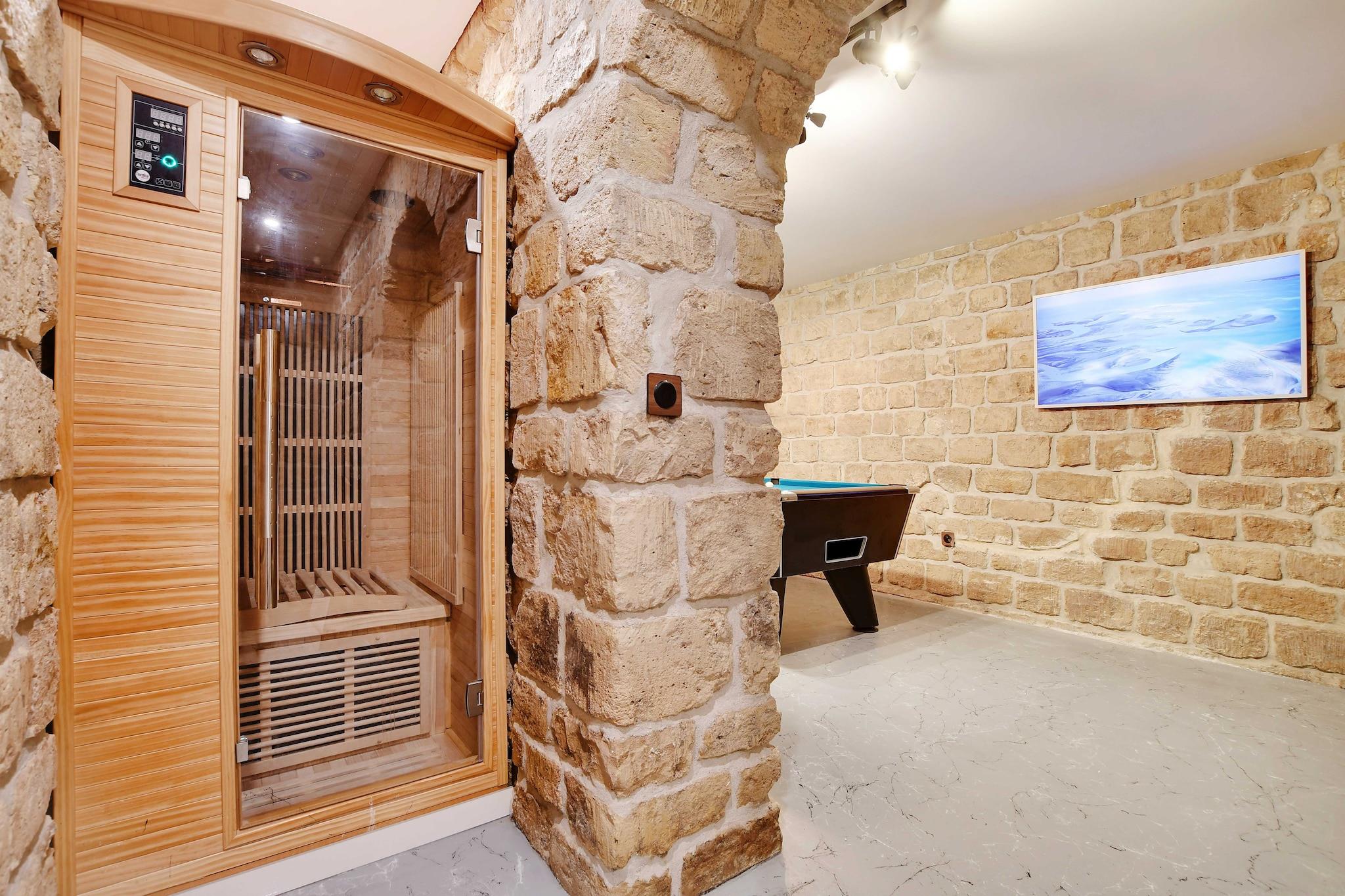 Stueetage: (Køkken(spisebord, kakkelovn, elkedel, brødrister, kaffemaskine, ovn, mikrobølgeovn, opvaskemaskine , køleskab, , ), Stue/soveværelse(dobbeltsovesofa, Fjernsyn), soveværelse(, Queen Bed), soveværelse(enkeltseng, enkeltseng), badeværelse(bruser, toilet, føntørrer, Håndklæder/sengelinned (inkl.), )) , , , Førstehjælp, Legeområde, Fjernsyn, tørretumbler, sauna, vaskemaskine, varme, barnestol, strygejern, , (), Carbon monoxide detector, Cleaning Disinfection, Downtown, Enhanced cleaning practices, High touch surfaces disinfected, Long term stays allowed