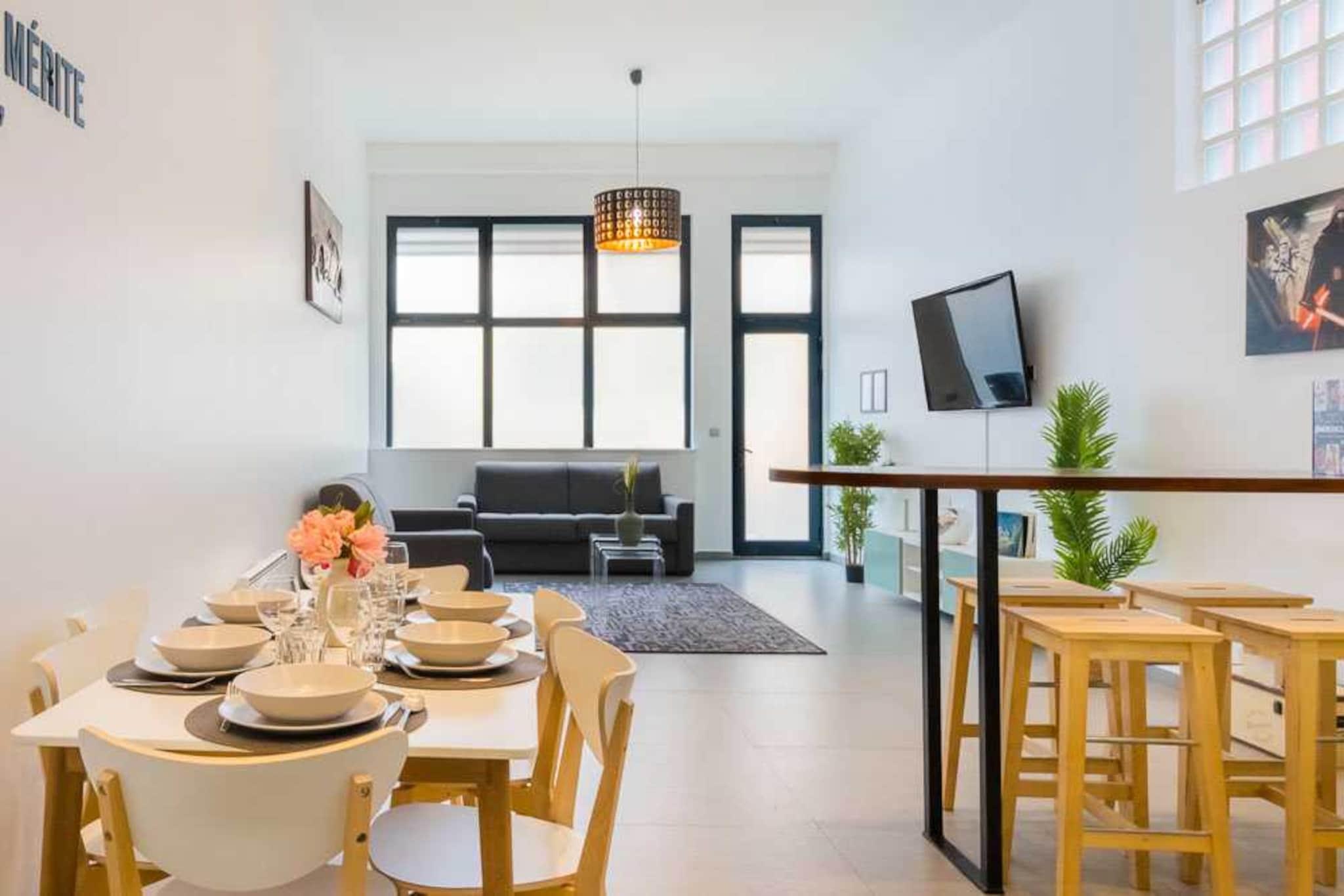 Stueetage: (åbent køkken(kakkelovn, elkedel, brødrister, kaffemaskine, mikrobølgeovn, køleskab, , ), Stue/soveværelse(, dobbeltsovesofa, Fjernsyn), soveværelse(, , dobbeltseng), badeværelse(bruser, håndvask, Håndklæder/sengelinned (inkl.)), badeværelse(bruser, håndvask, toilet, Håndklæder/sengelinned (inkl.)), toilet(toilet)) Mellemetage: (soveværelse(dobbeltseng), soveværelse(dobbeltseng)) , Førstehjælp, Legeområde, vaskemaskine, varme, strygejern, føntørrer, , , Carbon monoxide detector, Cleaning Disinfection, Downtown, Enhanced cleaning practices, High touch surfaces disinfected, Long term stays allowed, Town