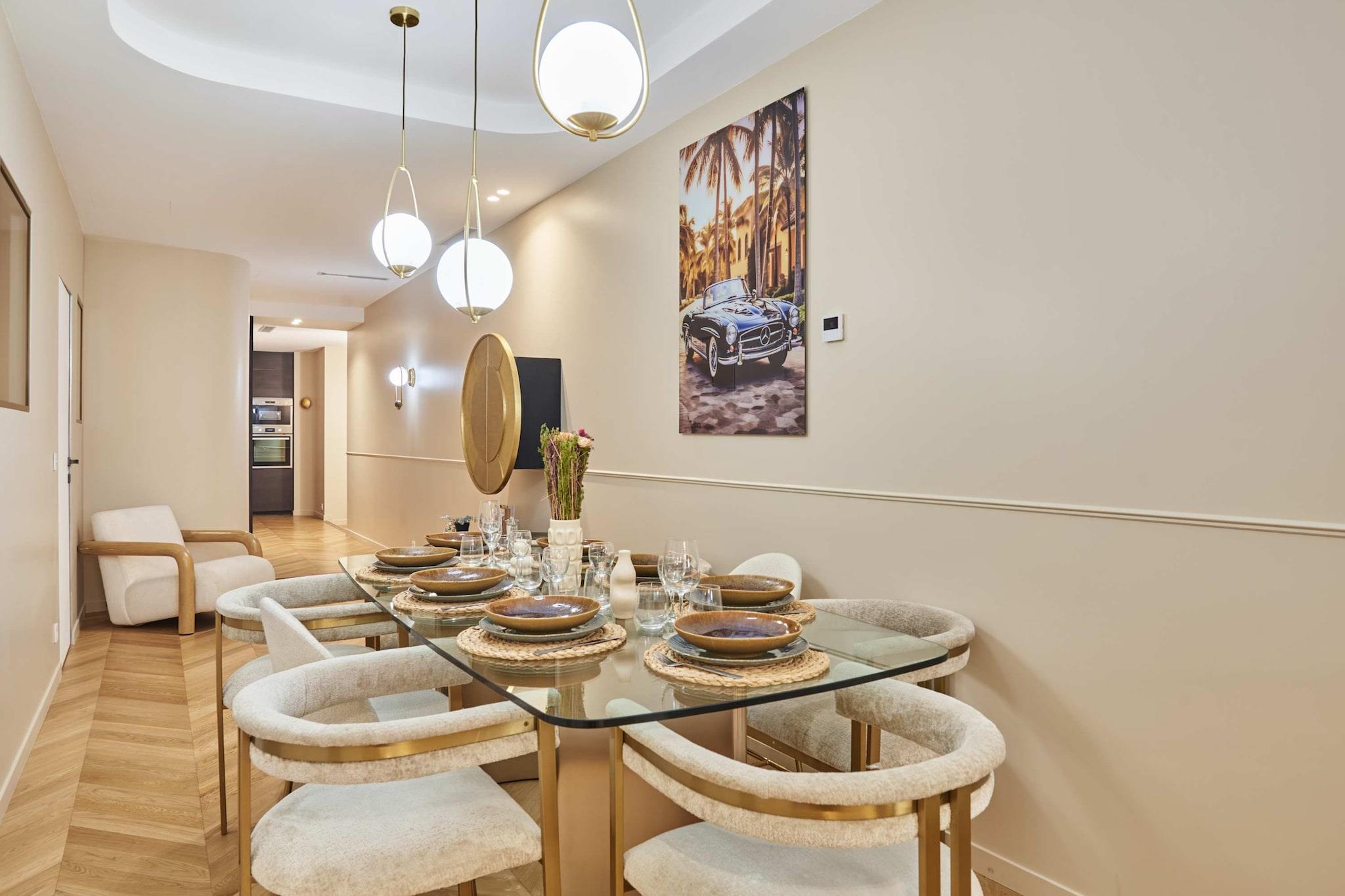 Oplev denne airconditionerede lejlighed med fire soveværelser, ideelt beliggende mellem Rue de Rennes og Saint-Germain-des-Prés. Rummelig, lys og smagfuldt indrettet, kombinerer den parisisk elegance med moderne komfort. Perfekt til et ophold med familie eller venner, vil du nyde en exceptionel beliggenhed, omgivet af caféer, butikker og restauranter i et af Paris' mest ikoniske kvarterer.