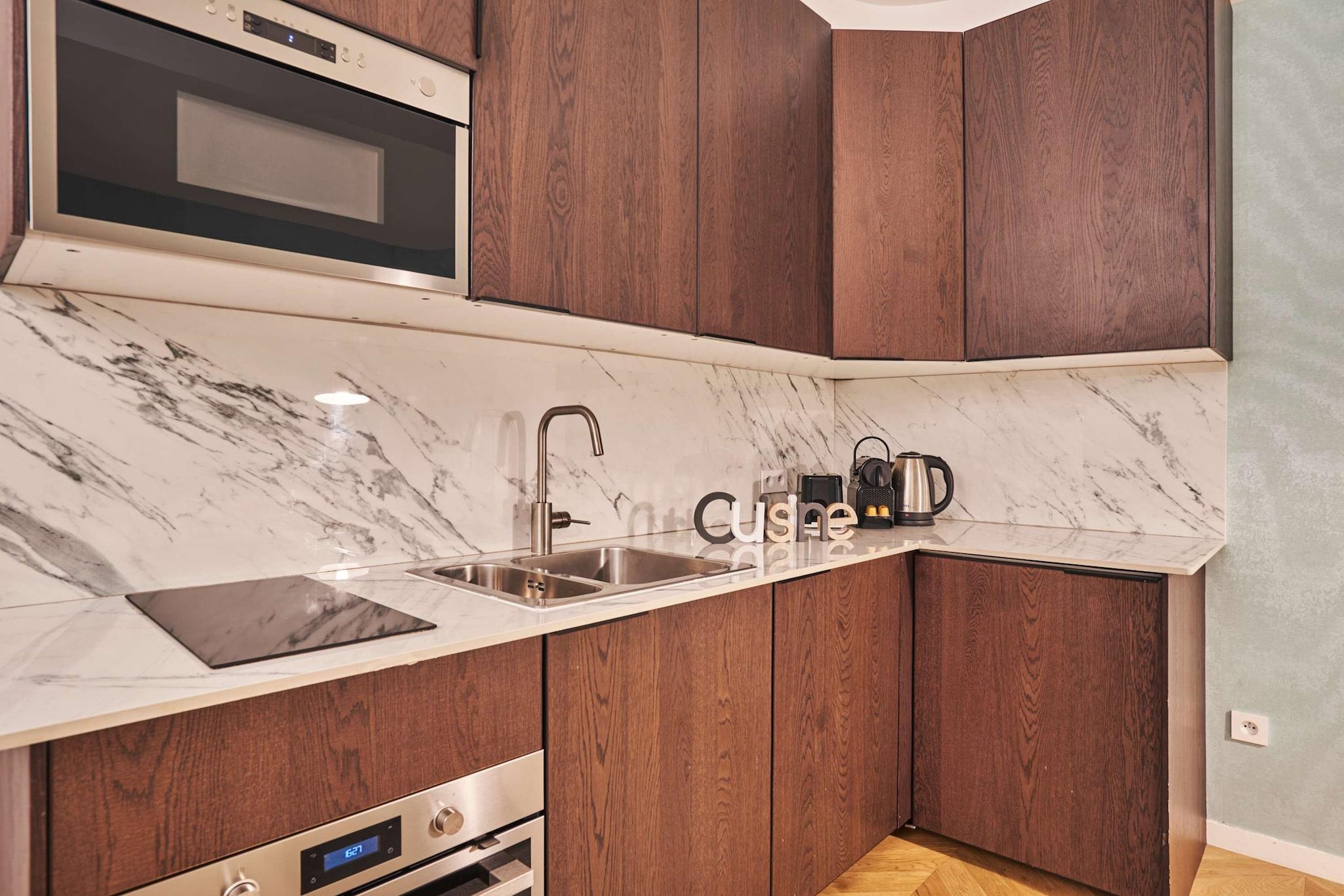 Oplev denne moderne parisiske lejlighed, ideel til 4 personer, med aircondition, fuldt udstyret og smagfuldt indrettet. Beliggende i hjertet af Paris, kun få skridt fra Rue de Rennes og Saint-Germain-des-Prés, tilbyder den nem adgang til restauranter, caféer, butikker og hovedstadens smukkeste seværdigheder. Perfekt til et uforglemmeligt ophold med familie eller venner.