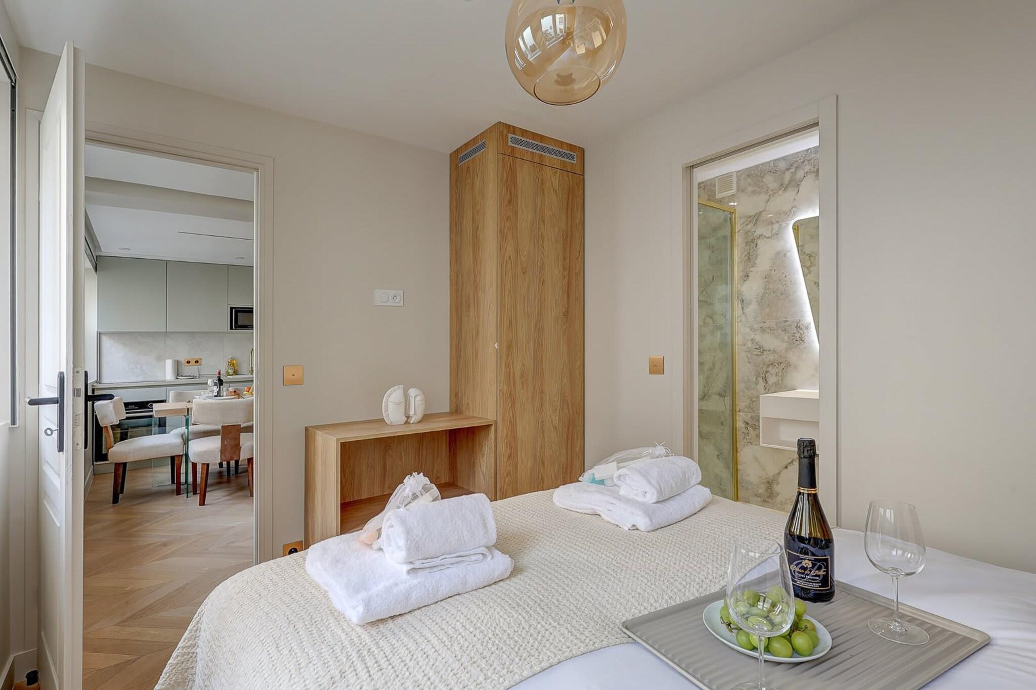 Oplev denne lejlighed med aircondition, der ligger i hjertet af Paris, tæt på Champs de Mars og Eiffeltårnet, i et distrikt kendt for sine mange butikker og restauranter. Designet til komfortabelt at rumme 4 personer, er hver eneste detalje gennemtænkt for at tilbyde en unik opholdsoplevelse, der kombinerer komfort og hygge. Med sin raffinerede indretning, der kombinerer æstetik og design, er dette fuldt udstyrede rum ideelt til at opleve en vellykket autentisk parisisk ferie, som du kan dele med familie eller venner.