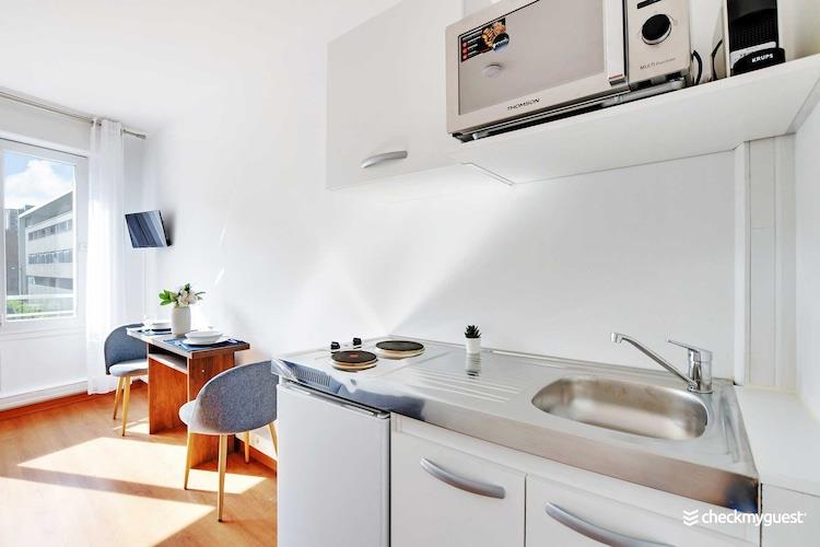 På 3. etage: (Køkken(kakkelovn, elkedel, brødrister, kaffemaskine, mikrobølgeovn, køleskab, , ), Stue/soveværelse(dobbeltsovesofa, Fjernsyn, strygejern), badeværelse(bruser, toilet, føntørrer, Håndklæder/sengelinned (inkl.), , )) , , , , , Førstehjælp, Legeområde, vaskemaskine, varme, , Carbon monoxide detector, Cleaning Disinfection, Downtown, Enhanced cleaning practices, High touch surfaces disinfected, Long term stays allowed, Town