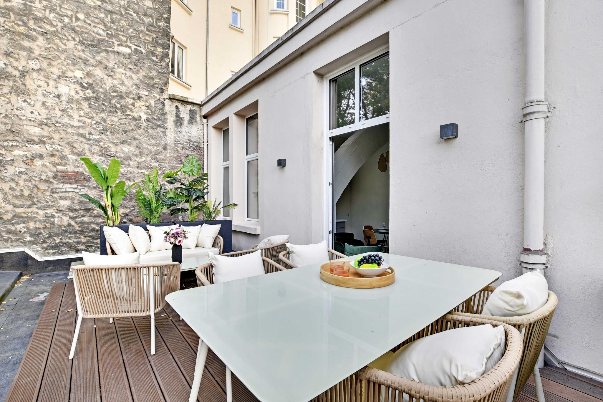 På 1. etage: (Køkken(kakkelovn, kogeplade, elkedel, brødrister, kaffemaskine, ovn, mikrobølgeovn, køleskab, , ), Stue/soveværelse(, , dobbeltsovesofa, Fjernsyn, spisebord), soveværelse(, , dobbeltseng), badeværelse(bruser, håndvask, toilet, Håndklæder/sengelinned (inkl.))) , Førstehjælp, Legeområde, tørretumbler, vaskemaskine, balkon eller terrasse, varme, strygejern, føntørrer, , , Carbon monoxide detector, Cleaning Disinfection, Downtown, Enhanced cleaning practices, High touch surfaces disinfected, Long term stays allowed, Room-darkening shades, Town, Washer in common space