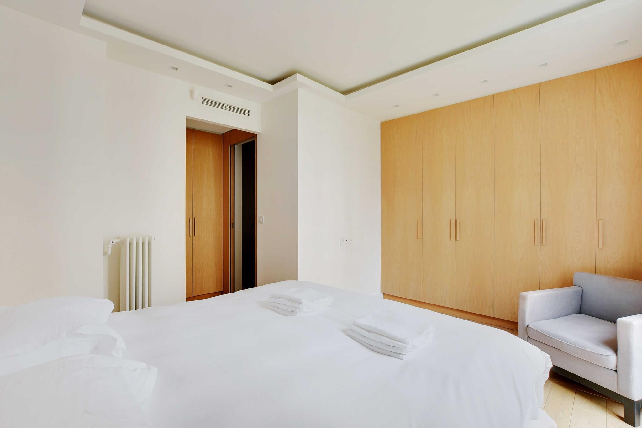 På 2. etage: (Stue(Fjernsyn, spisebord, balkon), Køkken(kakkelovn, elkedel, brødrister, kaffemaskine, ovn, mikrobølgeovn, opvaskemaskine , køleskab, , ), soveværelse(, , king size-seng), badeværelse(bruser, håndvask, toilet, Håndklæder/sengelinned (inkl.), , )) , , , , , Førstehjælp, Legeområde, tørretumbler, vaskemaskine, balkon eller terrasse, varme, klimaanlæg, strygejern, føntørrer, , Carbon monoxide detector, Cleaning Disinfection, Downtown, Enhanced cleaning practices, High touch surfaces disinfected, Long term stays allowed, Room-darkening shades, Town