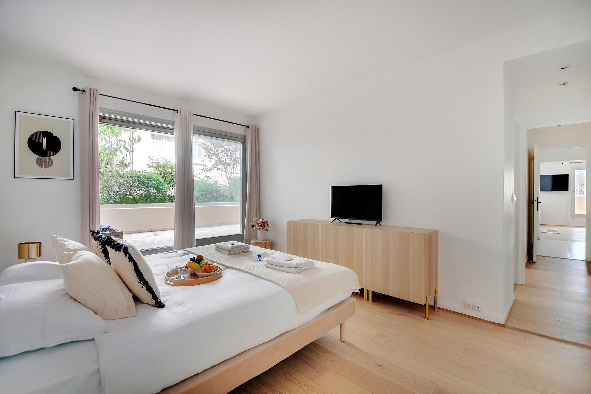 Checkmyguest offers you an elegant 90 m² 2-bedroom apartment in the Grenelle district of Paris' 15th arrondissement. Well-equipped for unforgettable stays, this apartment is close to the majestic Eiffel Tower and the historic Hôtel des Invalides, for an exceptional Parisian experience. The geographical location of the apartment will allow you to move around the capital very easily via these many public transport options : Metro: The nearest metro station to Avenue Paul Déroulède is La Motte-Picquet - Grenelle, served by lines 6, 8 and 10. This station offers easy access to various parts of Paris. Bus: Several bus lines serve stops close to the avenue, offering convenient connections to other parts of the city. Vélib': The City of Paris' self-service bicycle service, Vélib', offers nearby bicycle stations, providing an environmentally-friendly travel option. Autolib': For those who prefer to drive, the Autolib' service offers self-service electric cars in the region. Cab: Parisian cabs are readily available and can be hailed on the street or booked by phone. Walking: Avenue Paul Déroulède is also great for walking, allowing residents and visitors to explore the surrounding area on foot. The 15th arrondissement's central location facilitates access to a network of public transport, offering great flexibility for getting around the city.