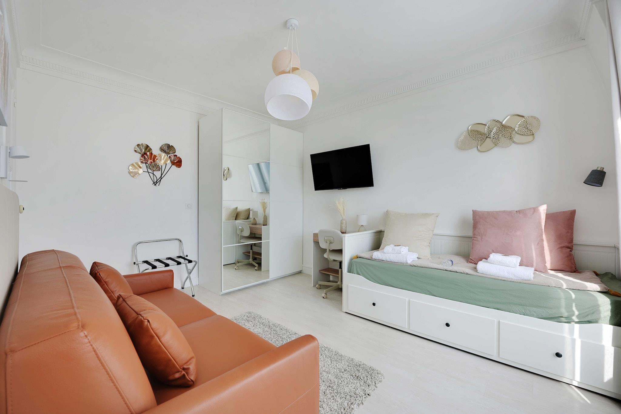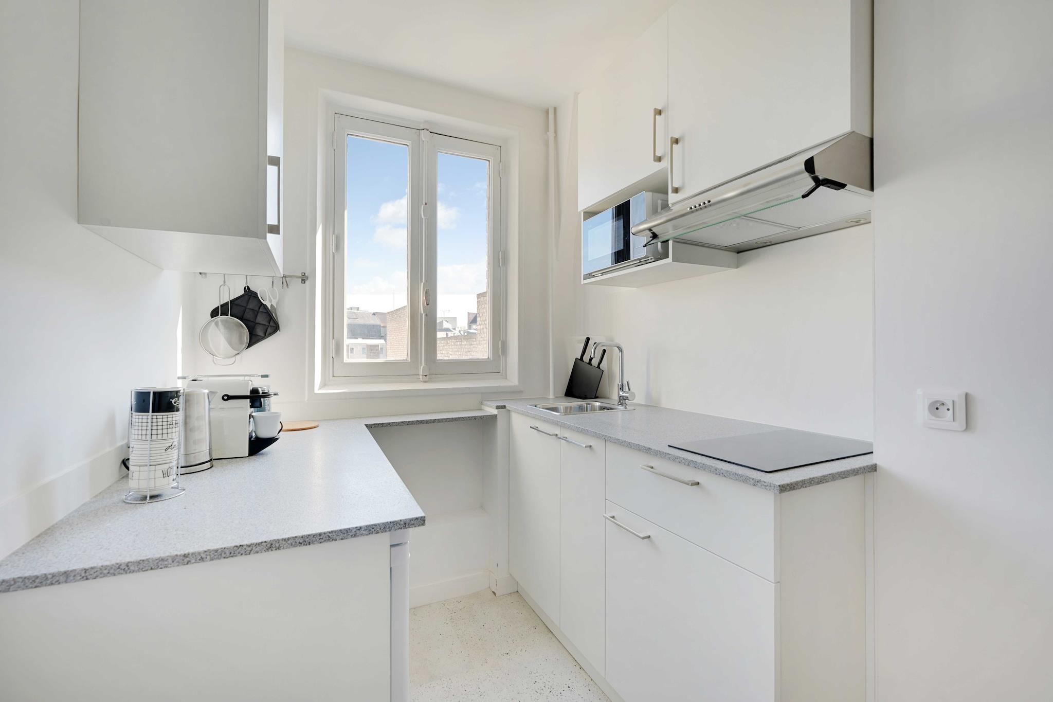 På 7. etage: (Køkken(elkedel, brødrister, kaffemaskine, ovn, combi-mikroovn, opvaskemaskine , køleskab, vaskemaskine, elektriske kogeplader, ), soveværelse(, dobbeltsovesofa), badeværelse(bruser, håndvask, toilet)) , , , , Førstehjælp, Fjernsyn, varme, strygejern, føntørrer, Håndklæder/sengelinned (inkl.), , , Carbon monoxide detector, Cleaning Disinfection, Downtown, Enhanced cleaning practices, Town