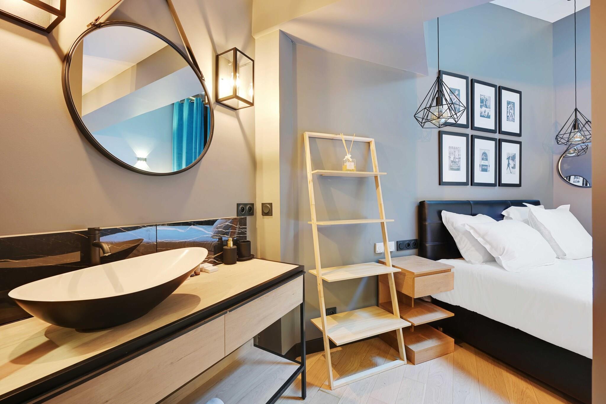 Stueetage: (Køkken(kogeplade, elkedel, brødrister, kaffemaskine, mikrobølgeovn, køleskab, håndvask, elektriske kogeplader, , , Wine glasses), Stue/soveværelse(king size-seng, Fjernsyn, spisebord(2 personer)), badeværelse(bruser, håndvask, toilet, Håndklæder inkl., , )) , , , , Førstehjælp, Legeområde, kakkelovn, DVD-afspiller, grill, tørretumbler, vaskemaskine, varme, grill, parkering, Puslepude, swimmingpool, private outdoor pool, bordfodbold, elevator, strygejern, føntørrer, Ladestation til el-biler, crib(free), Håndklæder/sengelinned (inkl.), , Carbon monoxide detector, Cleaning Disinfection, Downtown, Enhanced cleaning practices, High touch surfaces disinfected, Long term stays allowed, Sea view, Town