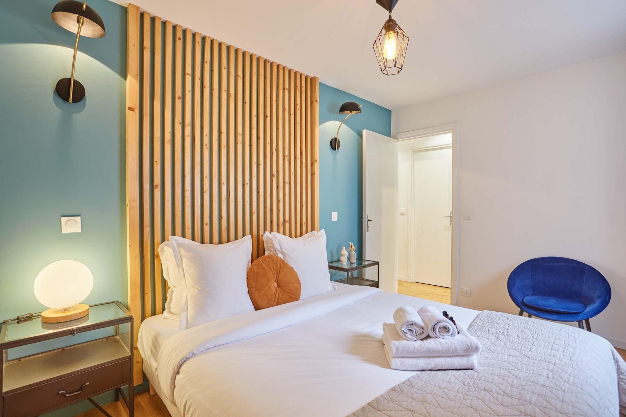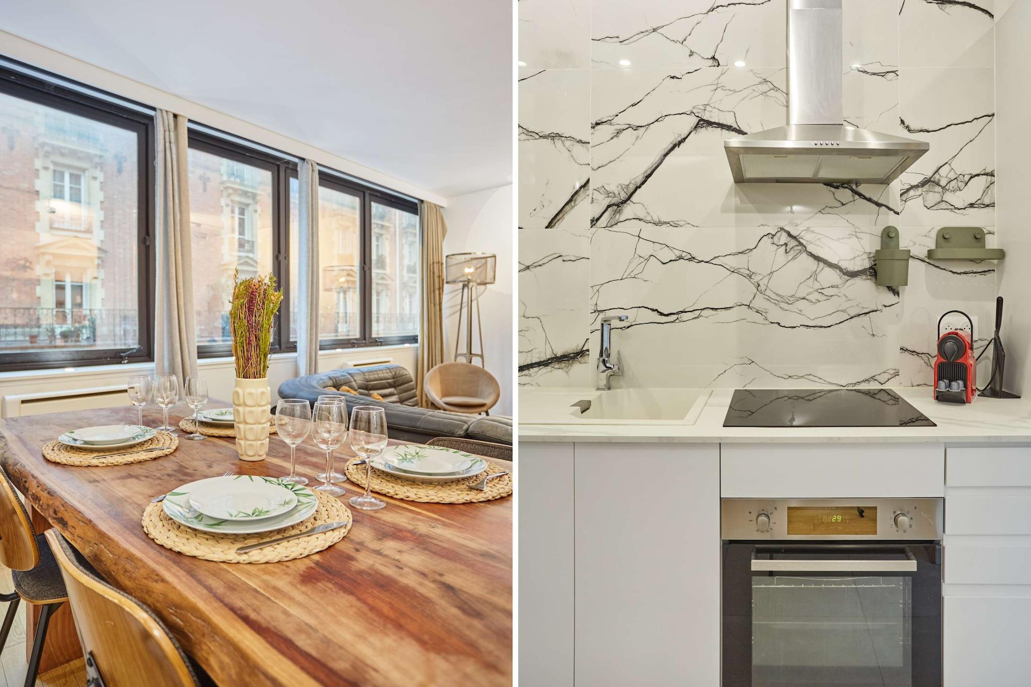 Oplev denne charmerende lejlighed med 2 soveværelser, ideelt beliggende i Paris' 17. arrondissement. I et livligt boligområde har den en førsteklasses beliggenhed halvvejs mellem stormagasinerne i Montmartre og Triumfbuen. Denne rummelige og imødekommende lejlighed er smagfuldt indrettet og fuldt udstyret til et uforglemmeligt ophold med familie eller venner. Butikker og turistattraktioner er let tilgængelige. Det er det perfekte sted for en vellykket parisisk ferie.