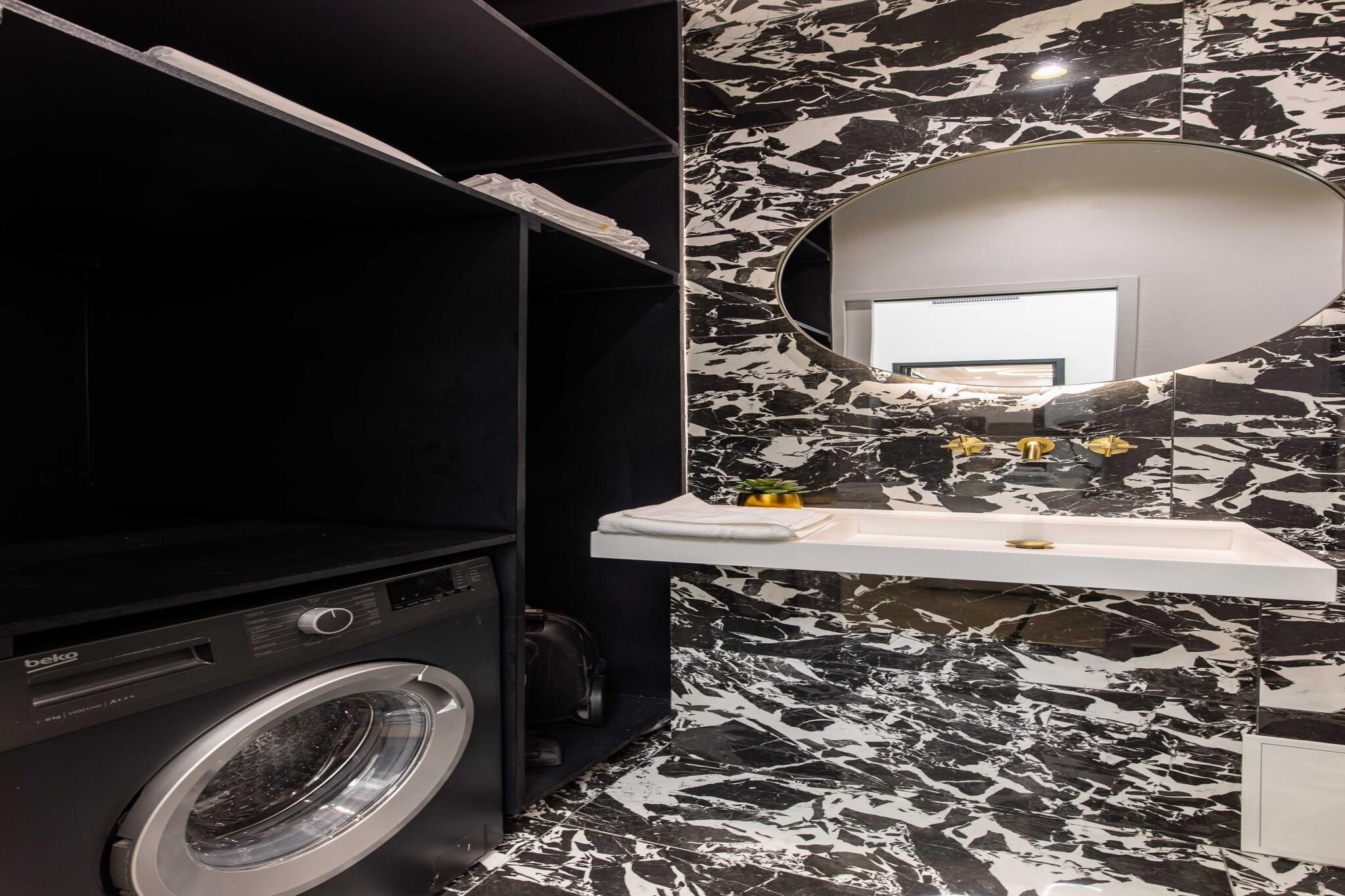 Stueetage: (Stue(Fjernsyn, sofahjørne), spisestue(Fjernsyn, spisebord), Køkken(kakkelovn, kogeplade, elkedel, brødrister, kaffemaskine, ovn, combi-mikroovn, opvaskemaskine , køleskab, , )) På 1. etage: (soveværelse(dobbeltseng, dobbeltseng, Fjernsyn, varme), badeværelse(badekar, bruser, håndvask, toilet, strygejern, føntørrer, )) På 2. etage: (soveværelse(dobbeltseng), badeværelse(badekar, bruser, håndvask, toilet, strygejern, føntørrer, )) Kælderetage: (soveværelse(, dobbeltseng, Fjernsyn), badeværelse(bruser, håndvask, toilet, vaskemaskine, strygejern, føntørrer, ), toilet(toilet)) , , , Førstehjælp, Legeområde, balkon eller terrasse, klimaanlæg, crib(free), Håndklæder/sengelinned (inkl.), , , Carbon monoxide detector, Downtown, Enhanced cleaning practices, Long term stays allowed, Room-darkening shades