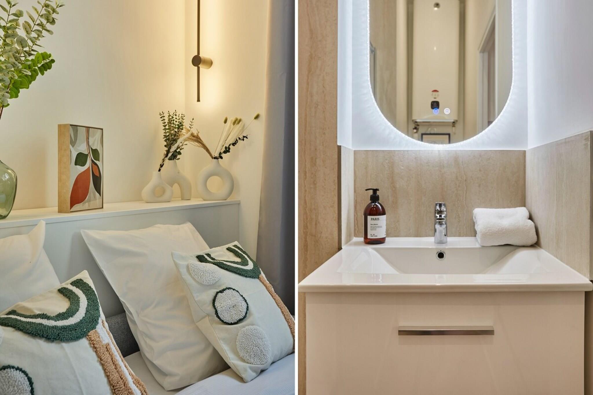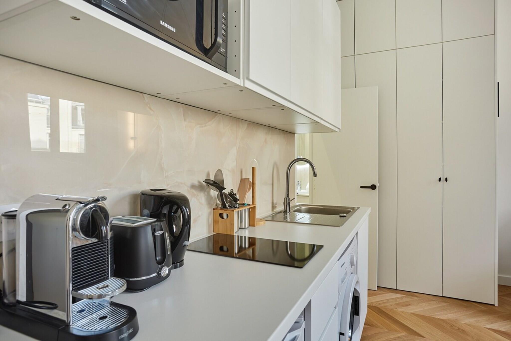På 3. etage: (Stue(, dobbeltsovesofa, Fjernsyn), Køkken(spisebord, kakkelovn, elkedel, brødrister, kaffemaskine, mikrobølgeovn, køleskab, fryser, , Baking sheet, Wine glasses), badeværelse(bruser, håndvask, toilet, Håndklæder inkl., , )) , , Førstehjælp, vaskemaskine, varme, strygejern, føntørrer, , , Carbon monoxide detector, Downtown