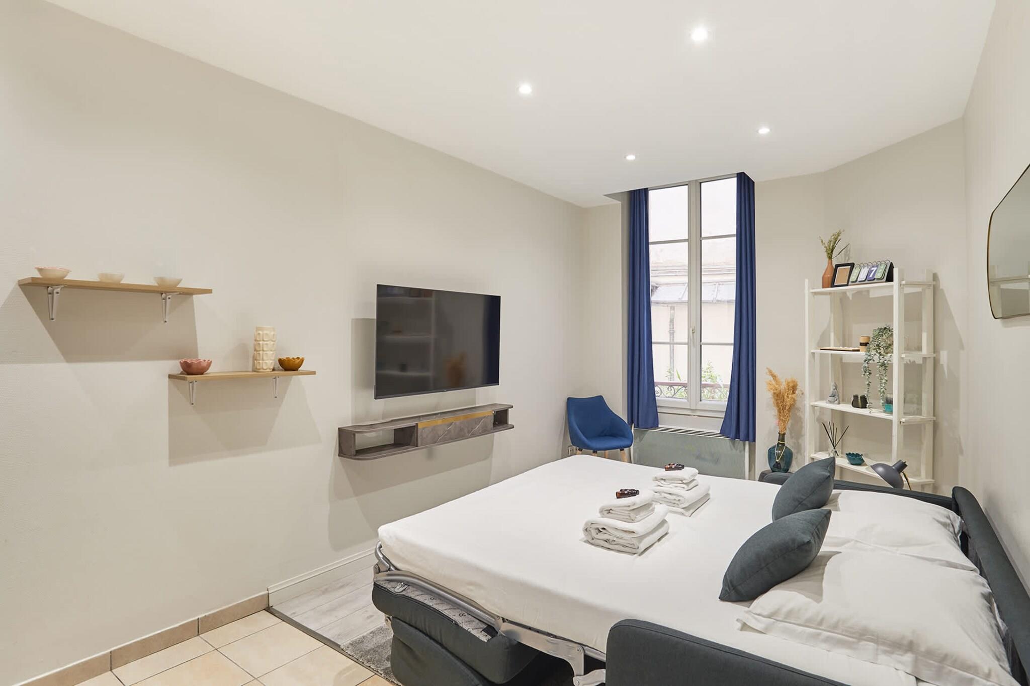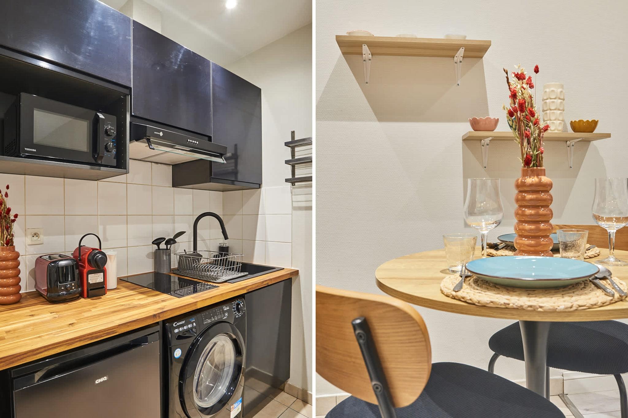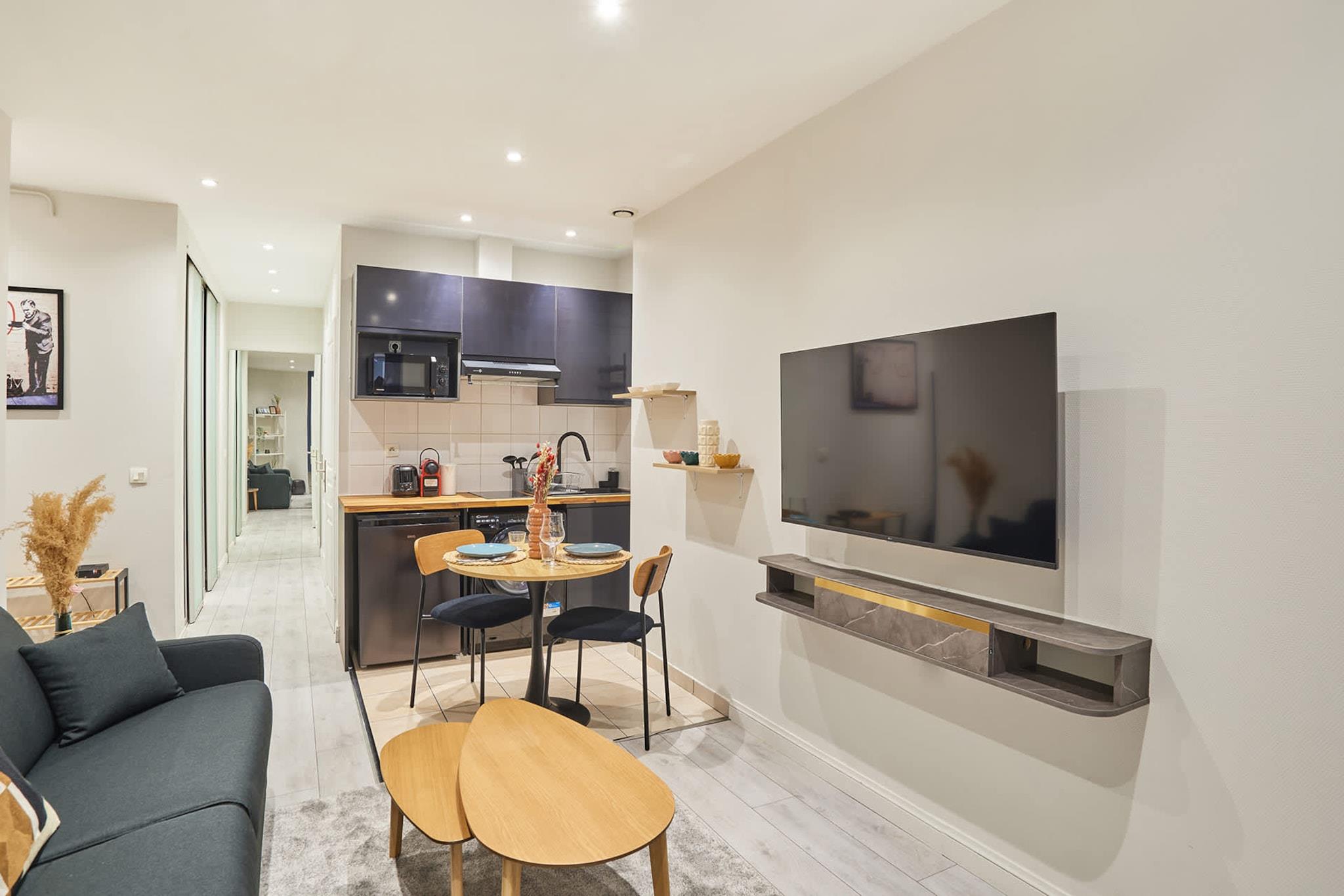 Velkommen til vores storslåede 27 m² store studie, beliggende i hjertet af Paris ved foden af Sacré-Cœur. Dette nyrenoverede rum er omhyggeligt indrettet for at give dig et mindeværdigt ophold. Oplev en rummelig stue med sovesofa og et åbent køkken, et badeværelse og et separat toilet. Metro: Lamarck - Caulaincourt linje 12