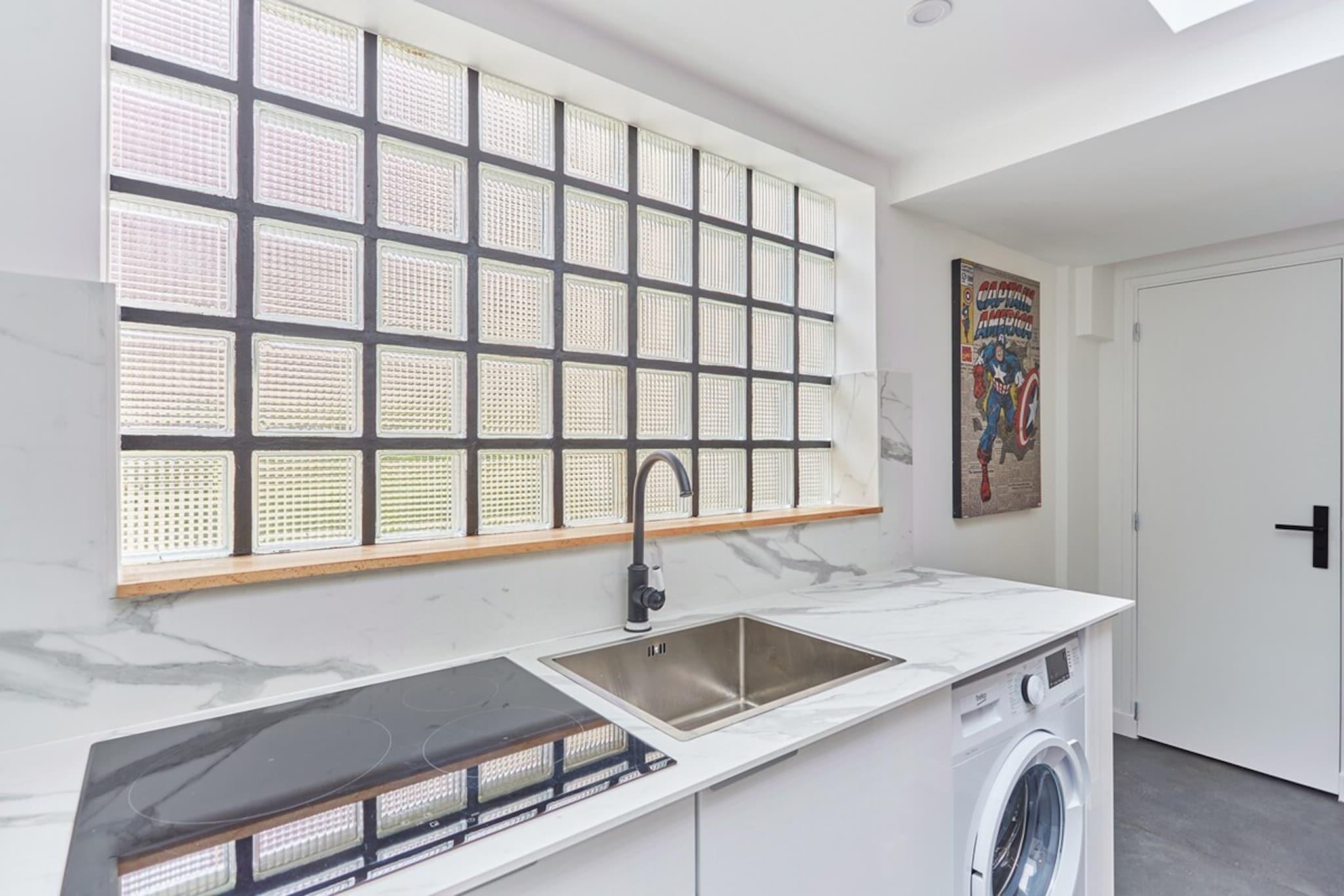 Stueetage: (Køkken(spisebord, elkedel, brødrister, kaffemaskine, mikrobølgeovn, køleskab, fryser, varme, , , Baking sheet, Wine glasses), stue / spisestue(Internetadgang, Fjernsyn, spisebord, sofahjørne), soveværelse(Queen Bed), soveværelse(Queen Bed), soveværelse(Queen Bed), badeværelse(bruser), badeværelse(bruser), toilet(toilet)) , , , Førstehjælp, Fjernsyn, tørretumbler, vaskemaskine, strygejern, føntørrer, , , , Cleaning products, Coffee, Downtown, Extra pillows and blankets, Room-darkening shades, Shower gel