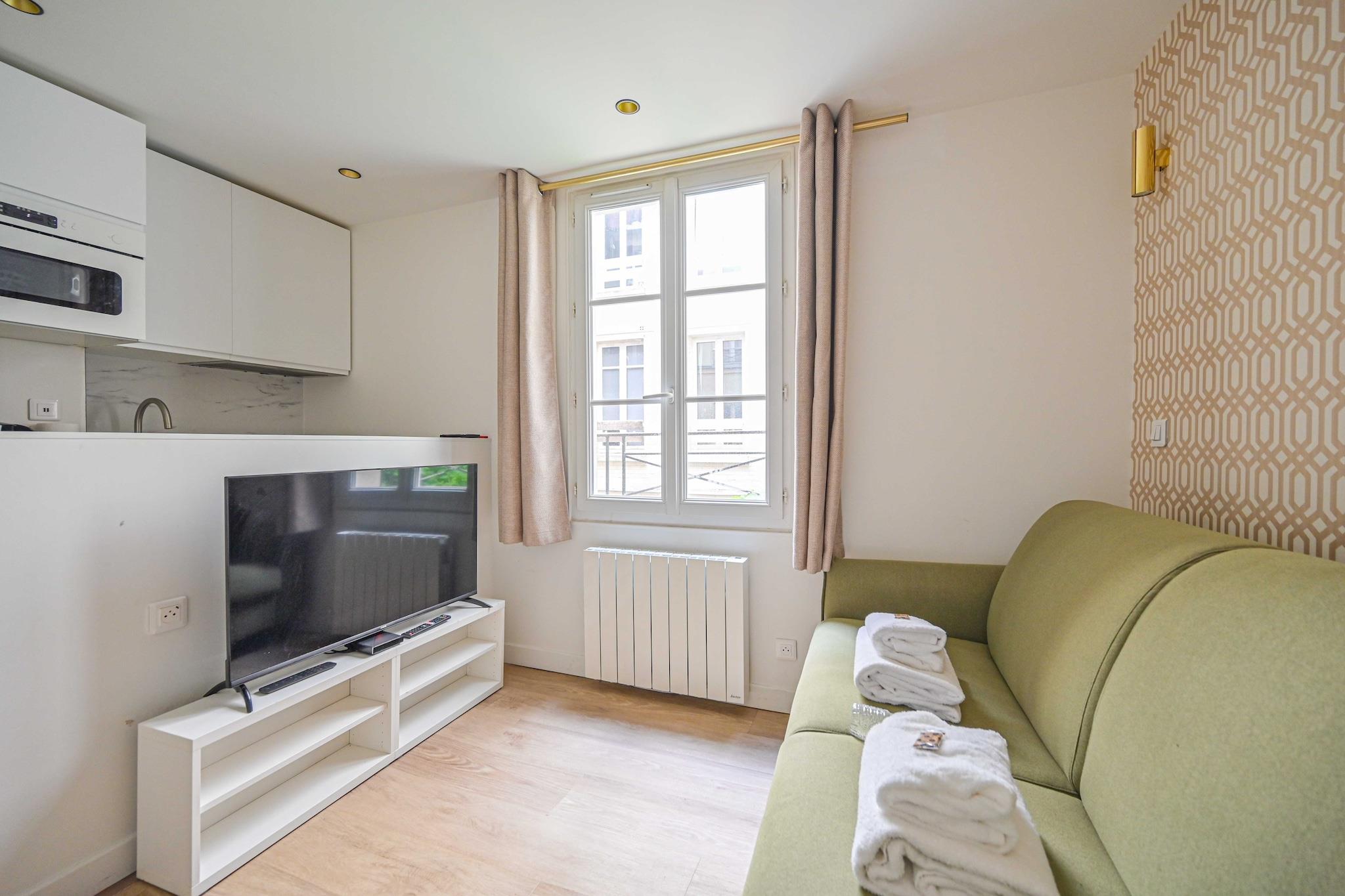 På 1. etage: (Stue(enkeltsovesofa, Fjernsyn, spisebord), Køkken(kakkelovn, elkedel, brødrister, kaffemaskine, mikrobølgeovn, køleskab), badeværelse(håndvask, føntørrer)) , , , , , Førstehjælp, Legeområde, varme, strygejern, Håndklæder/sengelinned (inkl.), , , , , Carbon monoxide detector, Cleaning Disinfection, Downtown, Enhanced cleaning practices, High touch surfaces disinfected, Long term stays allowed, Town
