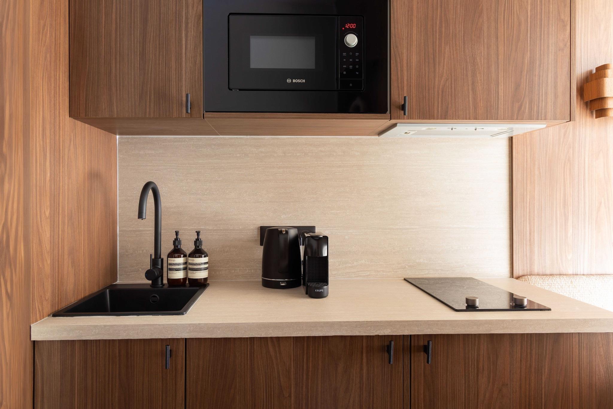 På 1. etage: (åbent køkken(kogeplade, elkedel, brødrister, kaffemaskine, mikrobølgeovn, køleskab, vaskemaskine, ), Stue/soveværelse(dobbeltseng, Fjernsyn, klimaanlæg, strygejern), badeværelse(bruser, toilet, føntørrer, , )) , , , , , Førstehjælp, Legeområde, håndvask, varme, Håndklæder/sengelinned (inkl.), , , Carbon monoxide detector, Cleaning Disinfection, Downtown, Enhanced cleaning practices, High touch surfaces disinfected, Long term stays allowed, Room-darkening shades, Town